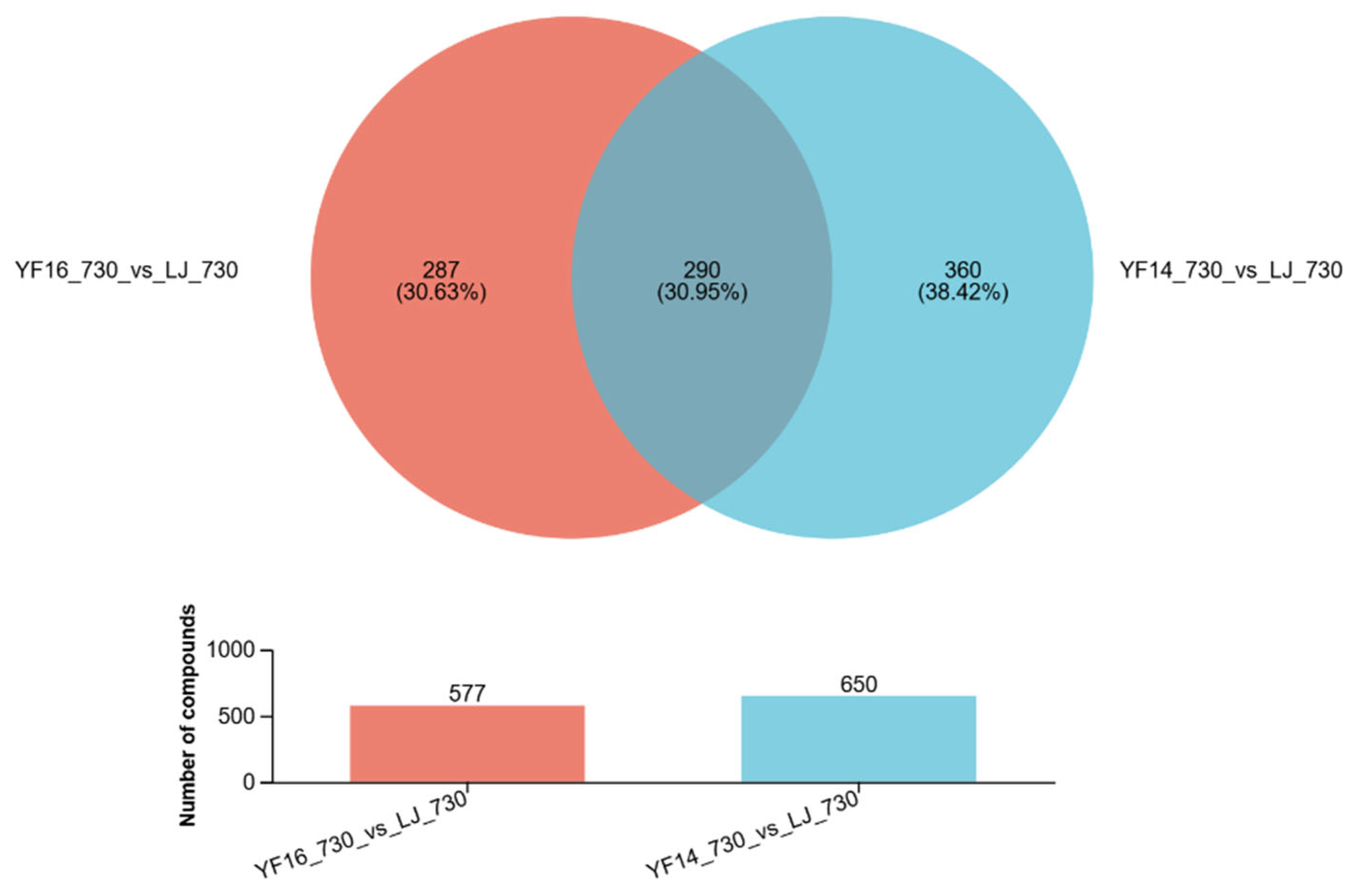 4.3. Determination of Untargeted Metabolomics
