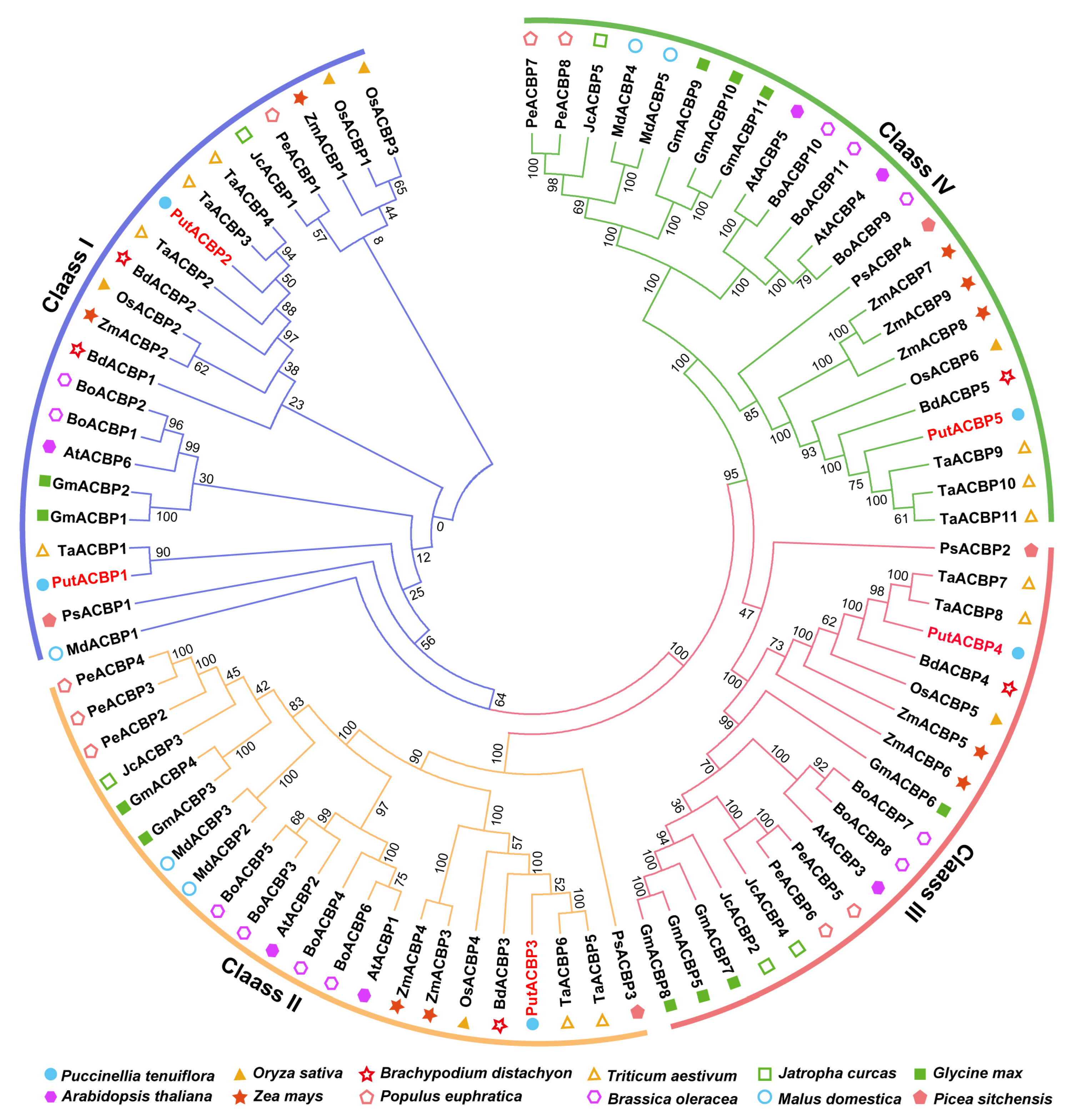 4.2. Phylogenetic Analysis of PutACBP Genes