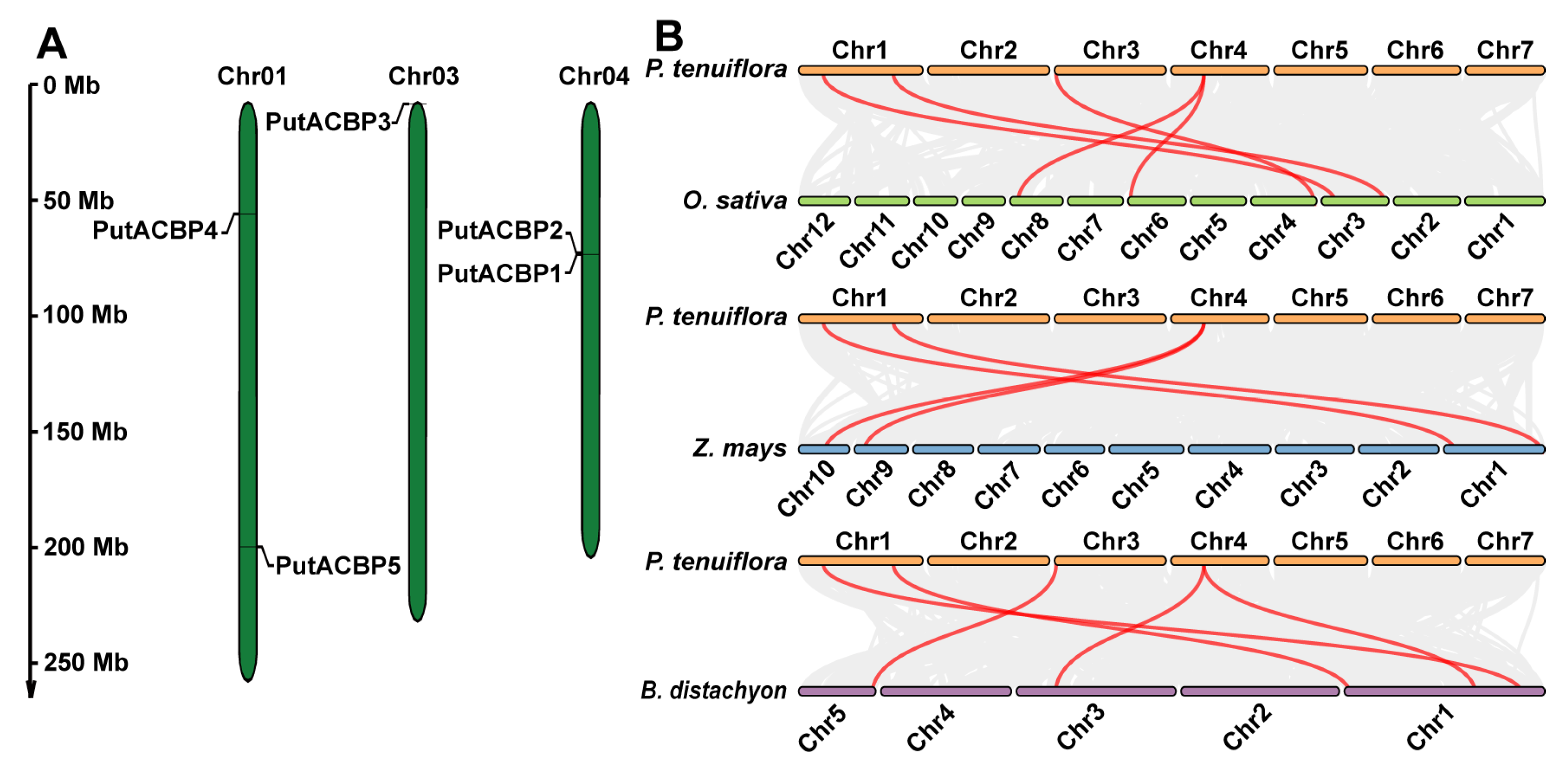 4.3. Chromosomal Localization of the PutACBP Genes