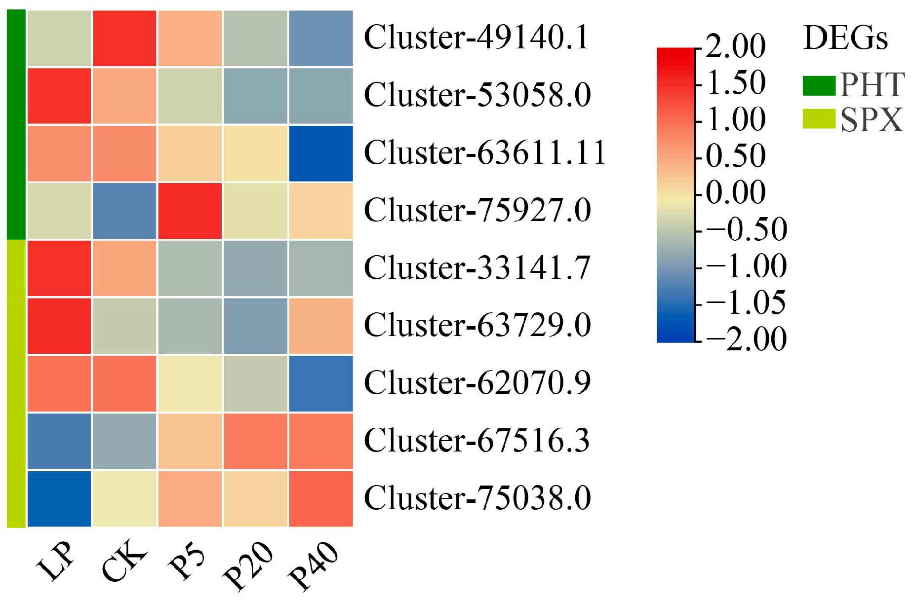 2.2.3. Expression of DEGs in P. wrightii Under Different Phosphorus Stress Conditions