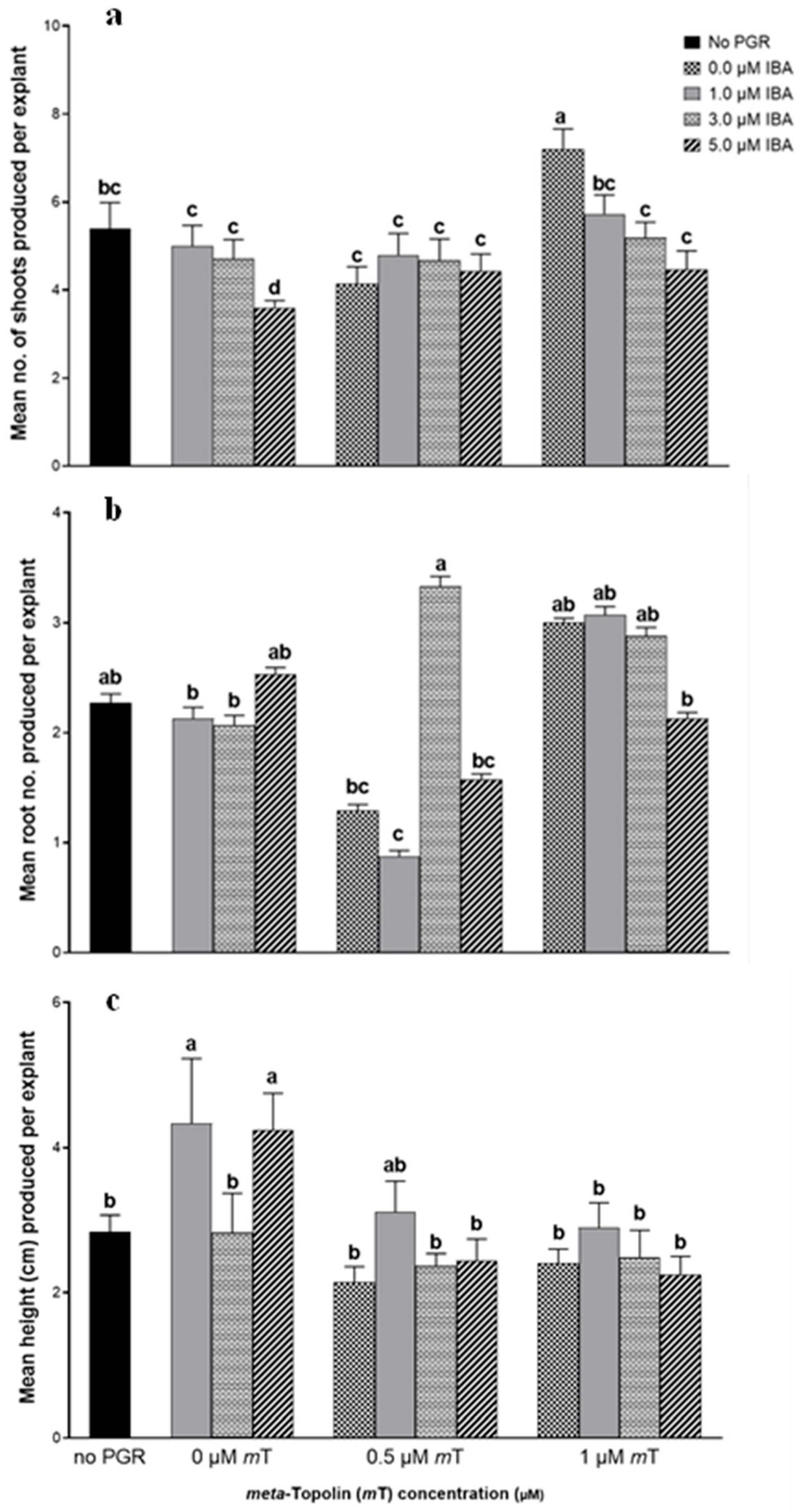 2.2. Influence of the Combination of mT and Indole-Butyric Acid on Shoot Proliferation