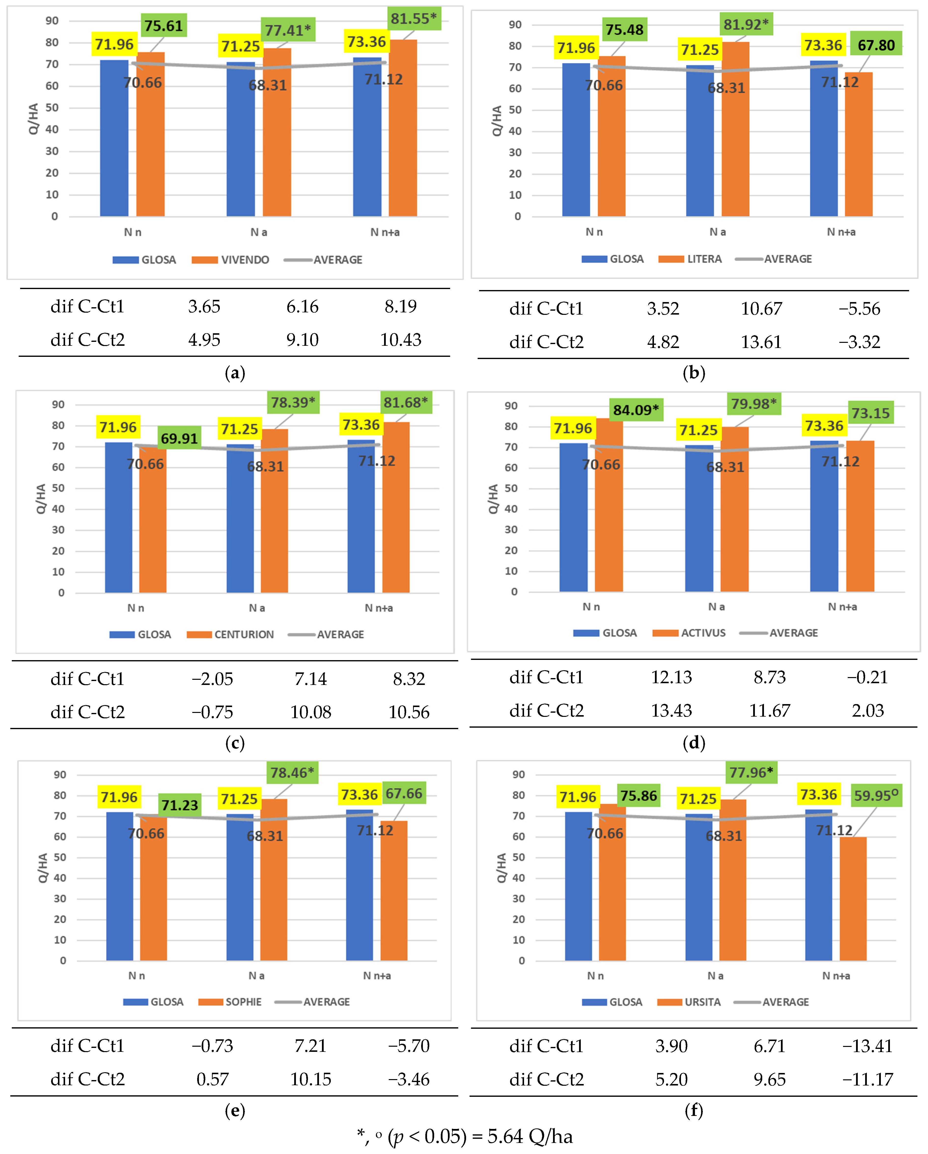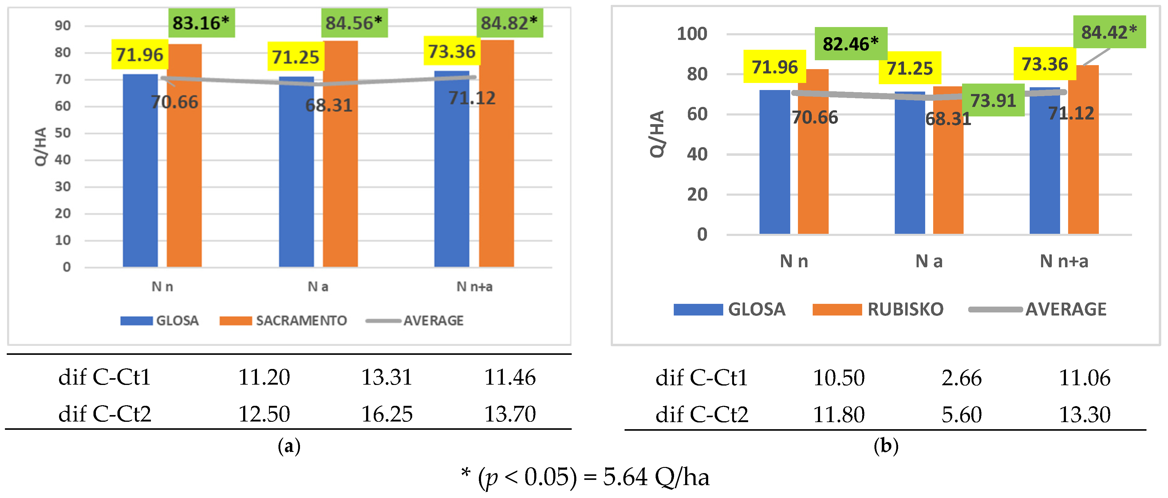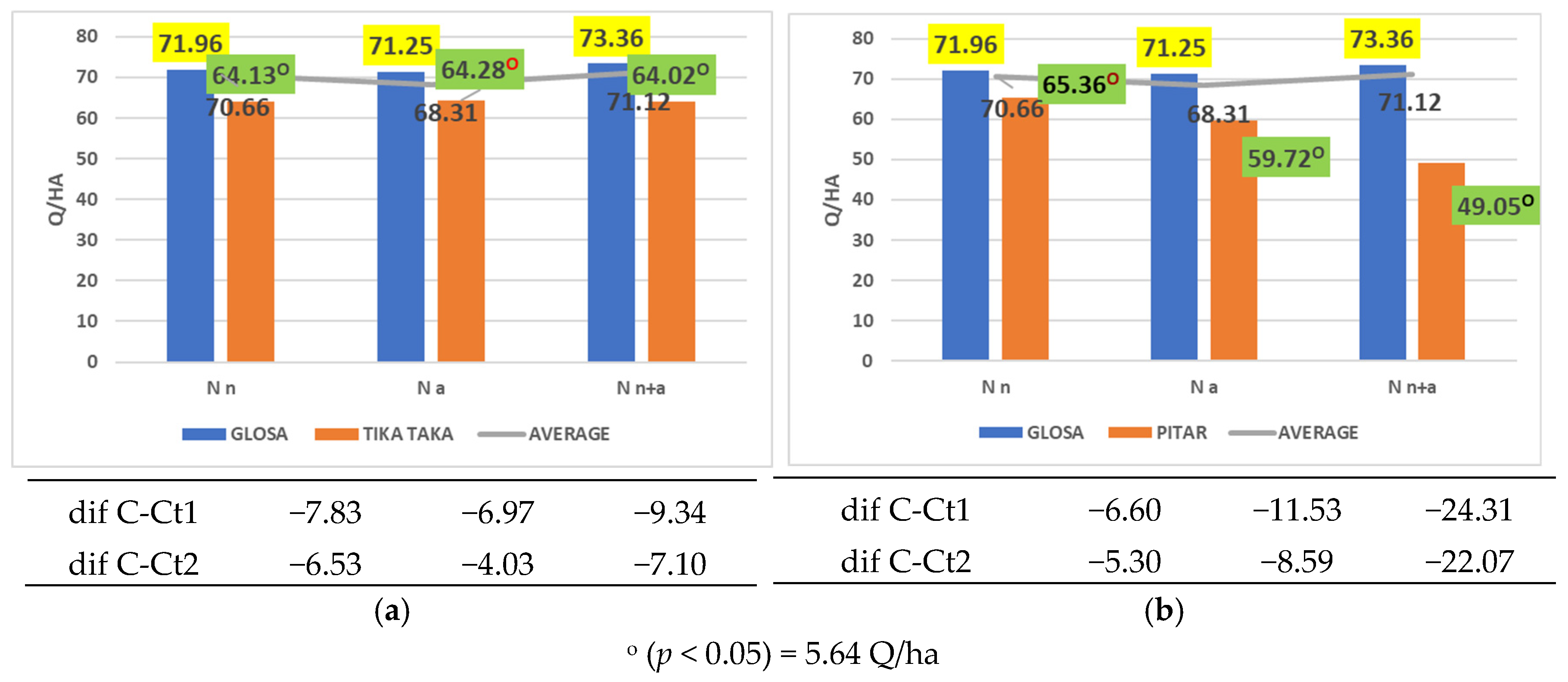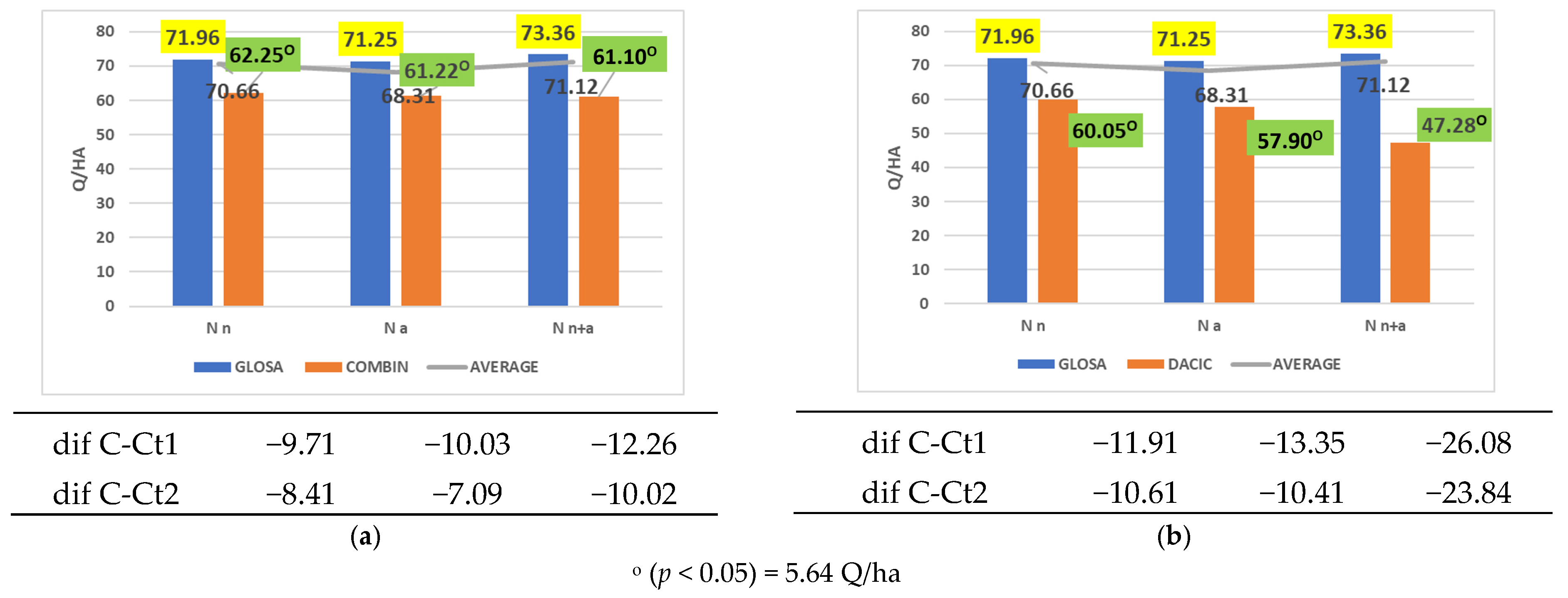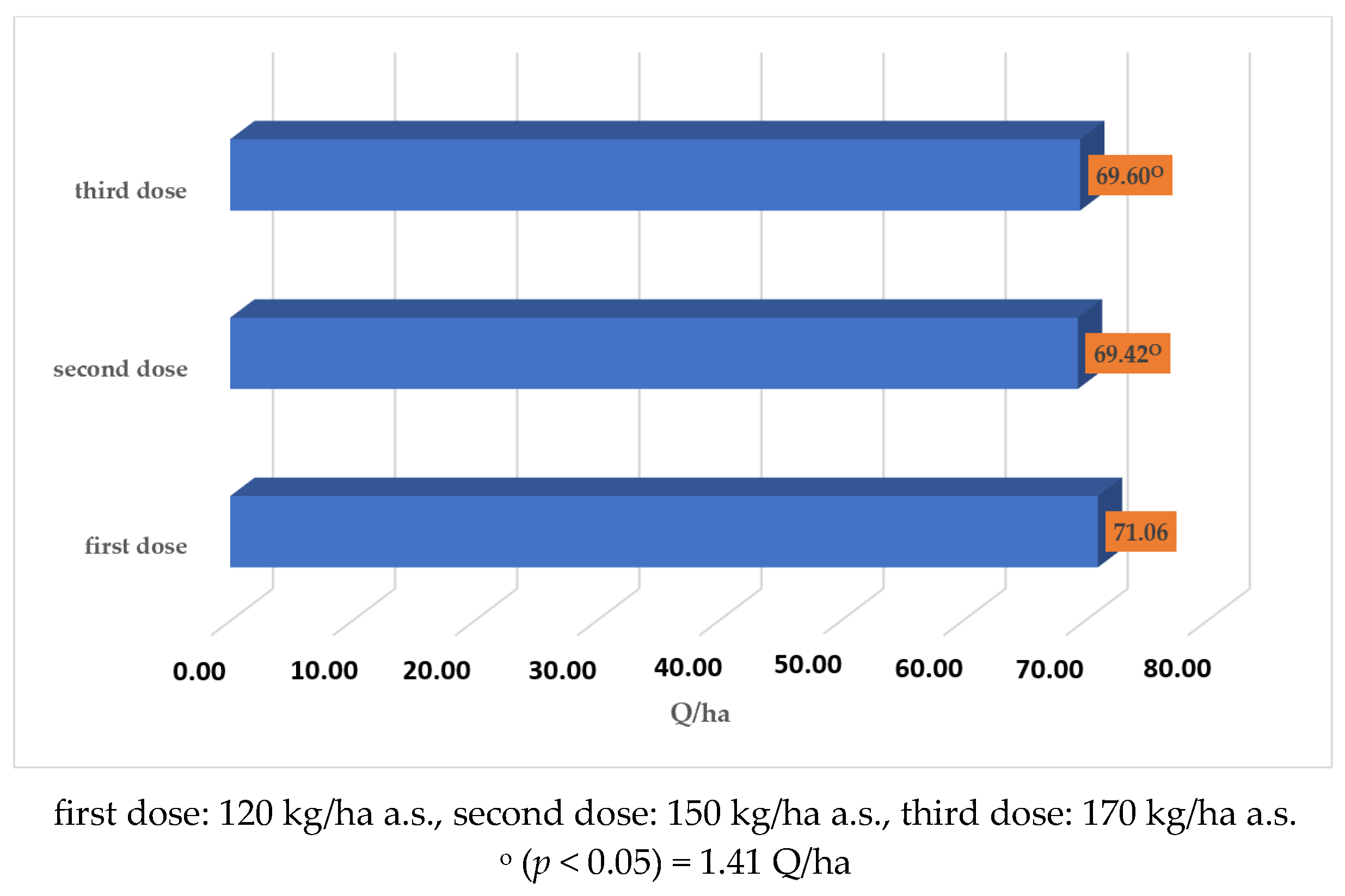 2.3. The Effect of Nitrogen Dose (Factor C) on Yield