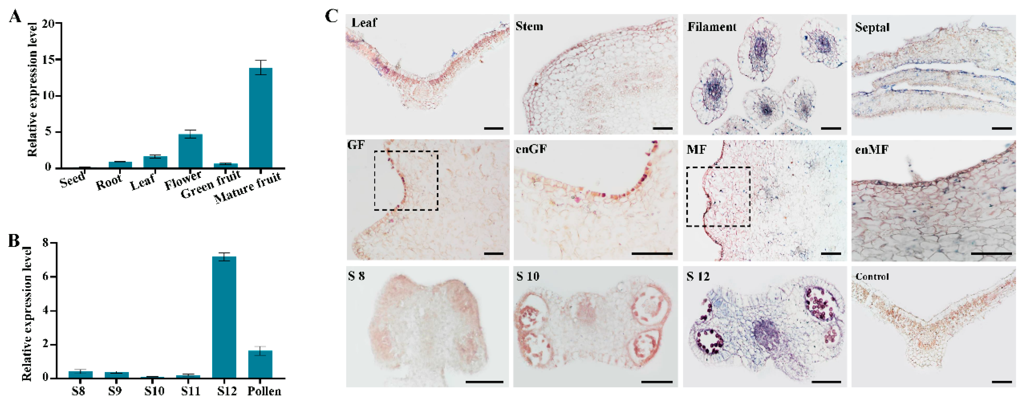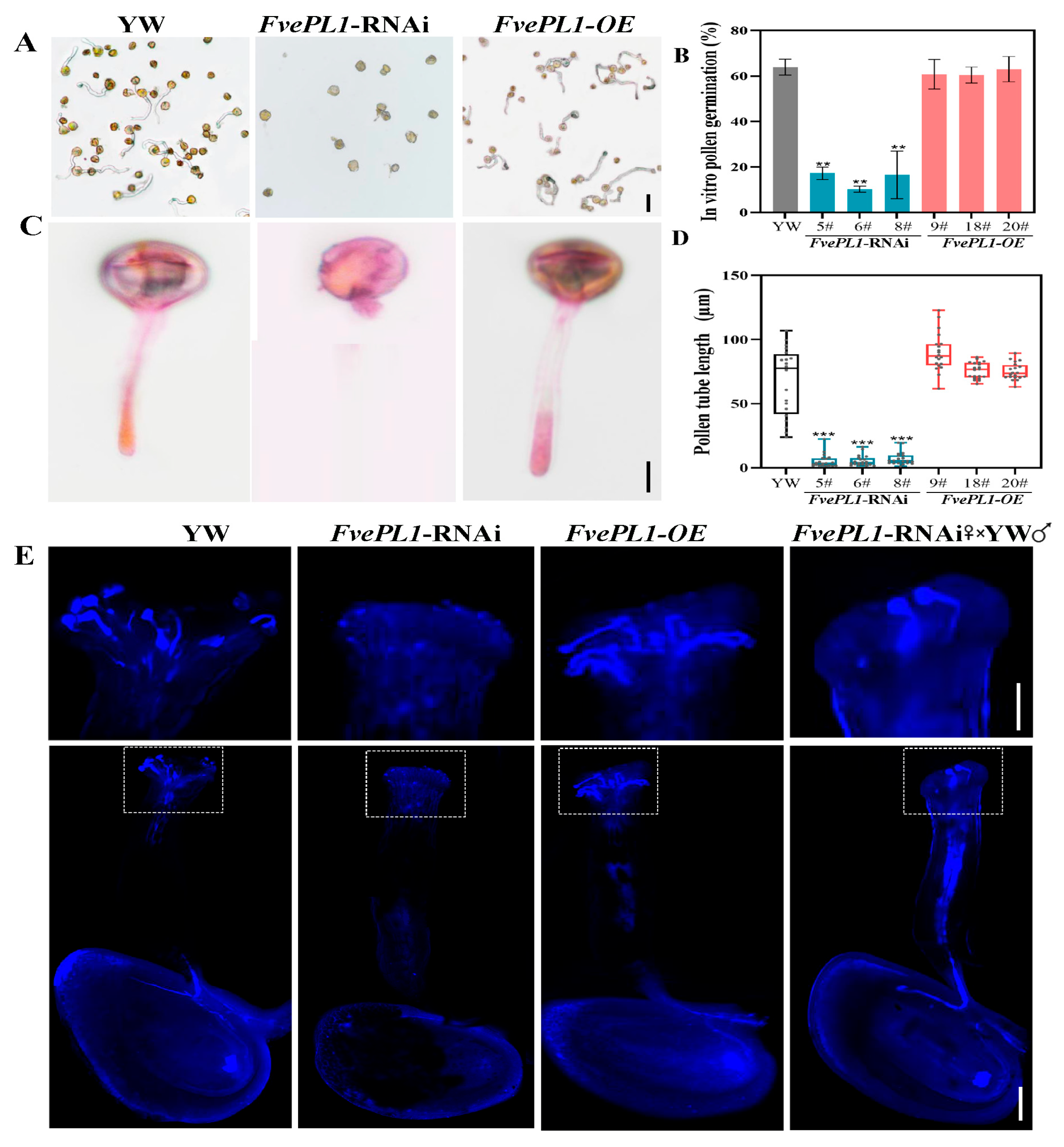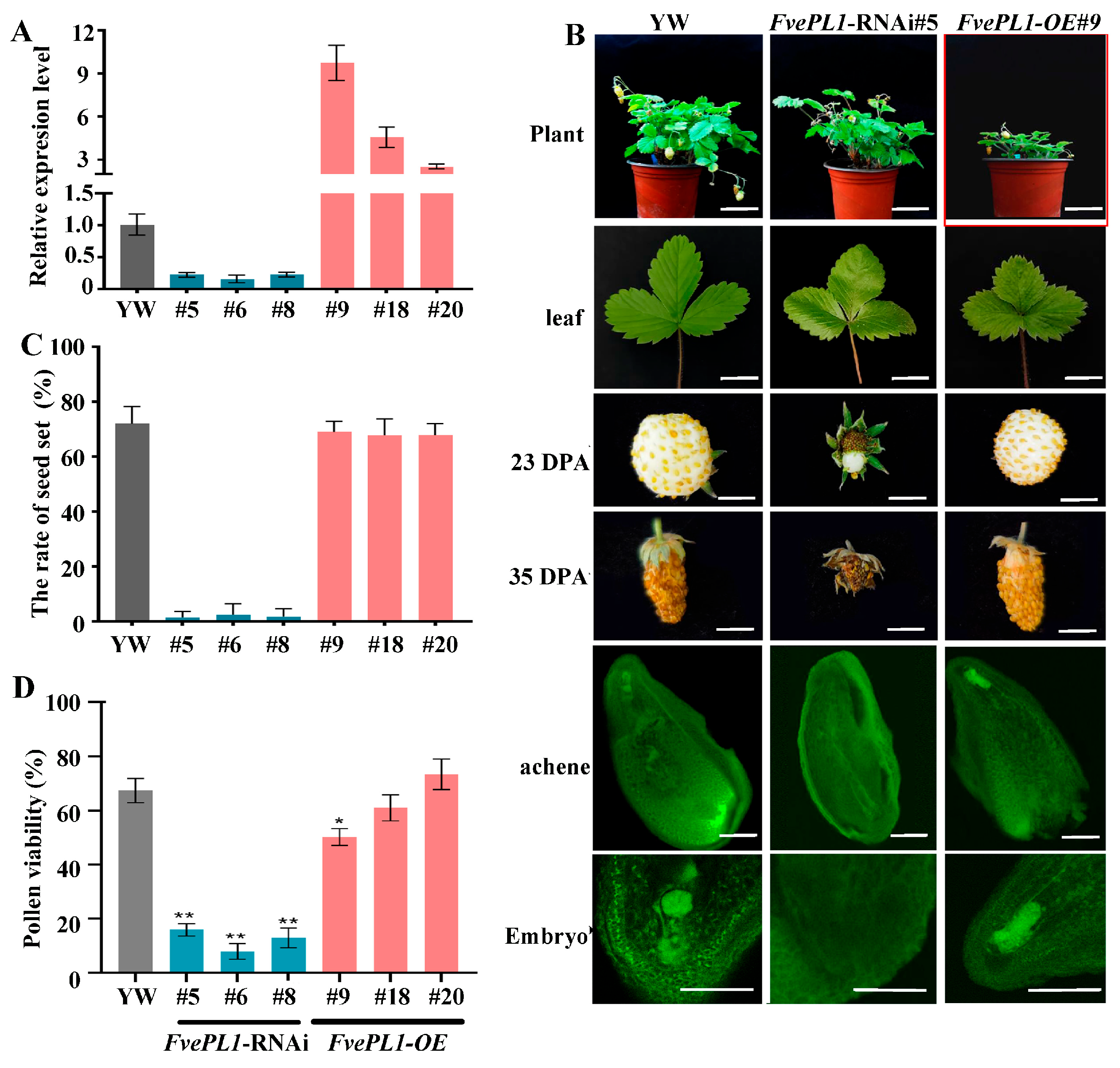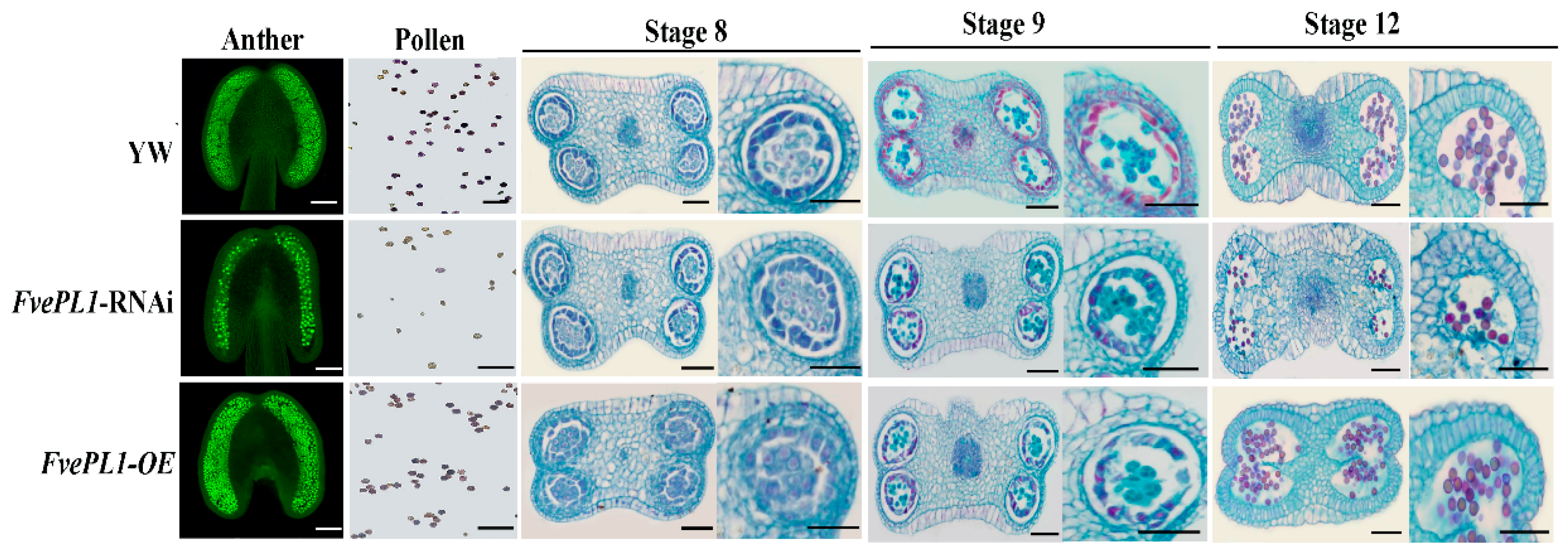 3.1. FvePL1 Implicated in Male Gametophyte Development Is Indispensable for Fruit Set