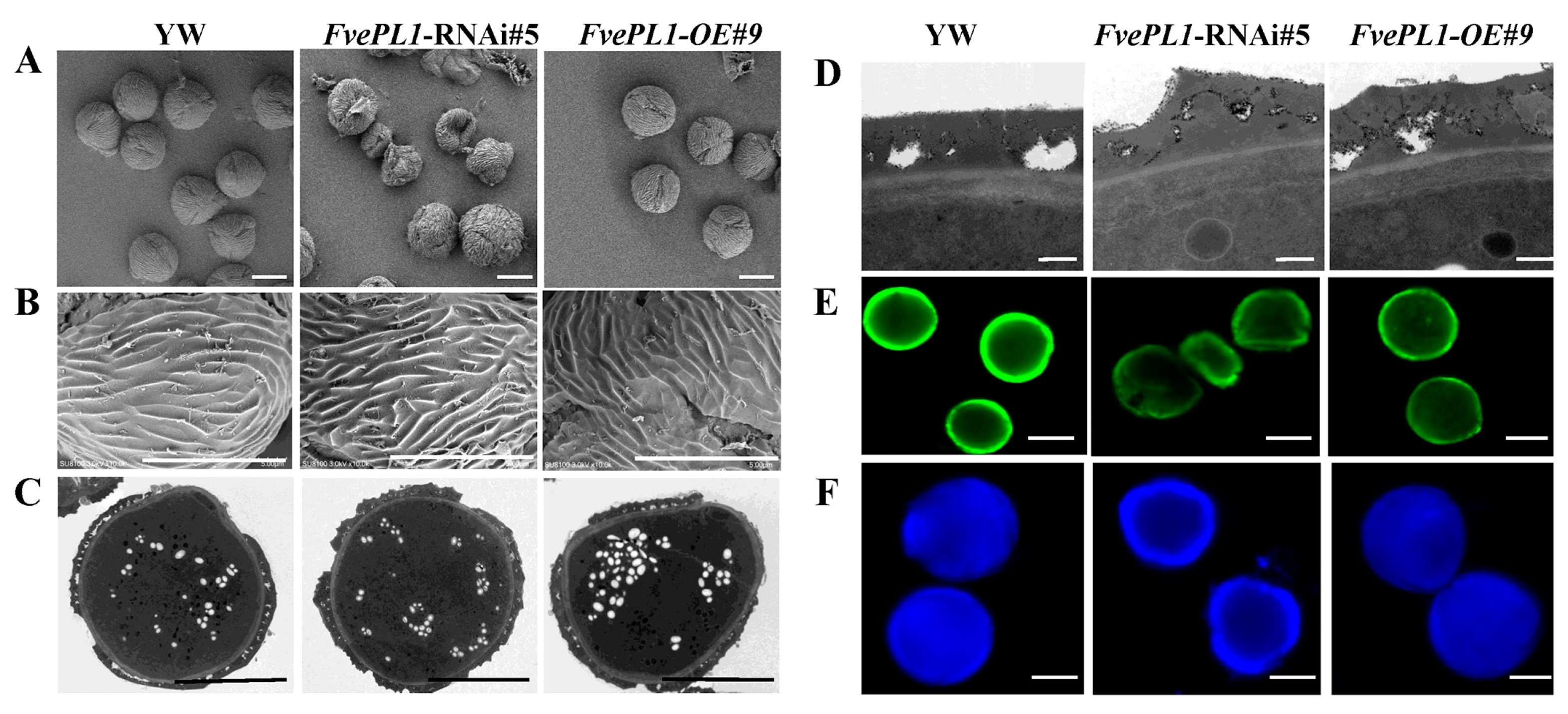 3.2. The Aborted Pollens Caused by the Reduction in Fvepl1 Initiated from the Incomplete and Delayed Degradation of Tapetum and Septum