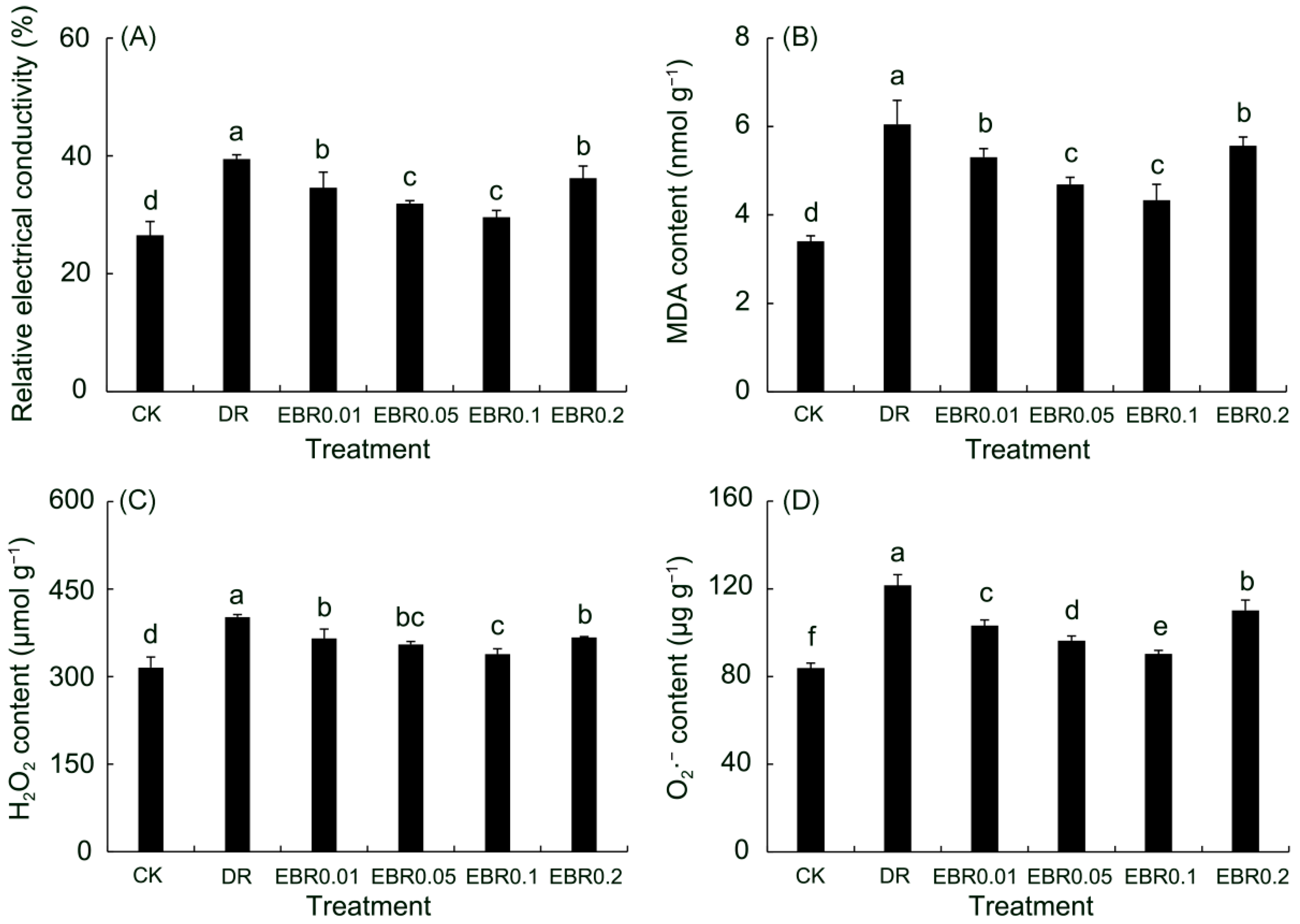 | EBR0.05 | 14.18 ± 0.69 ab | 3.09 ± 0.24 b | 4.75 ± 0.46 b | 8.88 ± 0.83 bc | 0.48 ± 0.02 c | 4.80 ± 0.12 c |