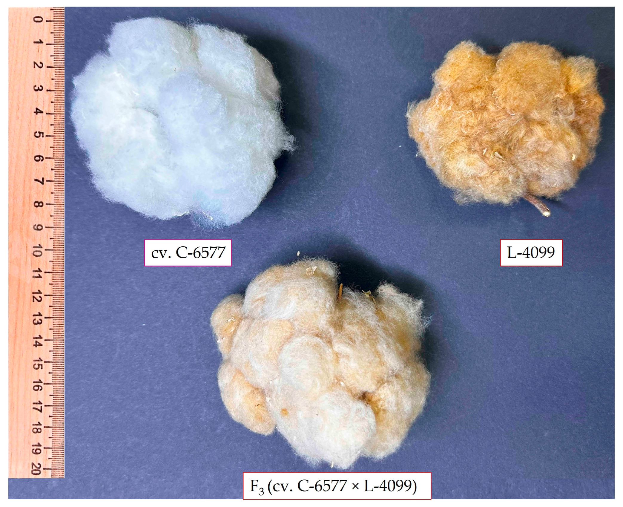 8]. However, intergroup hybridization with elite white-fiber cultivars (C-6570, C-6577, C-6580) substantially enhanced fiber traits in the F