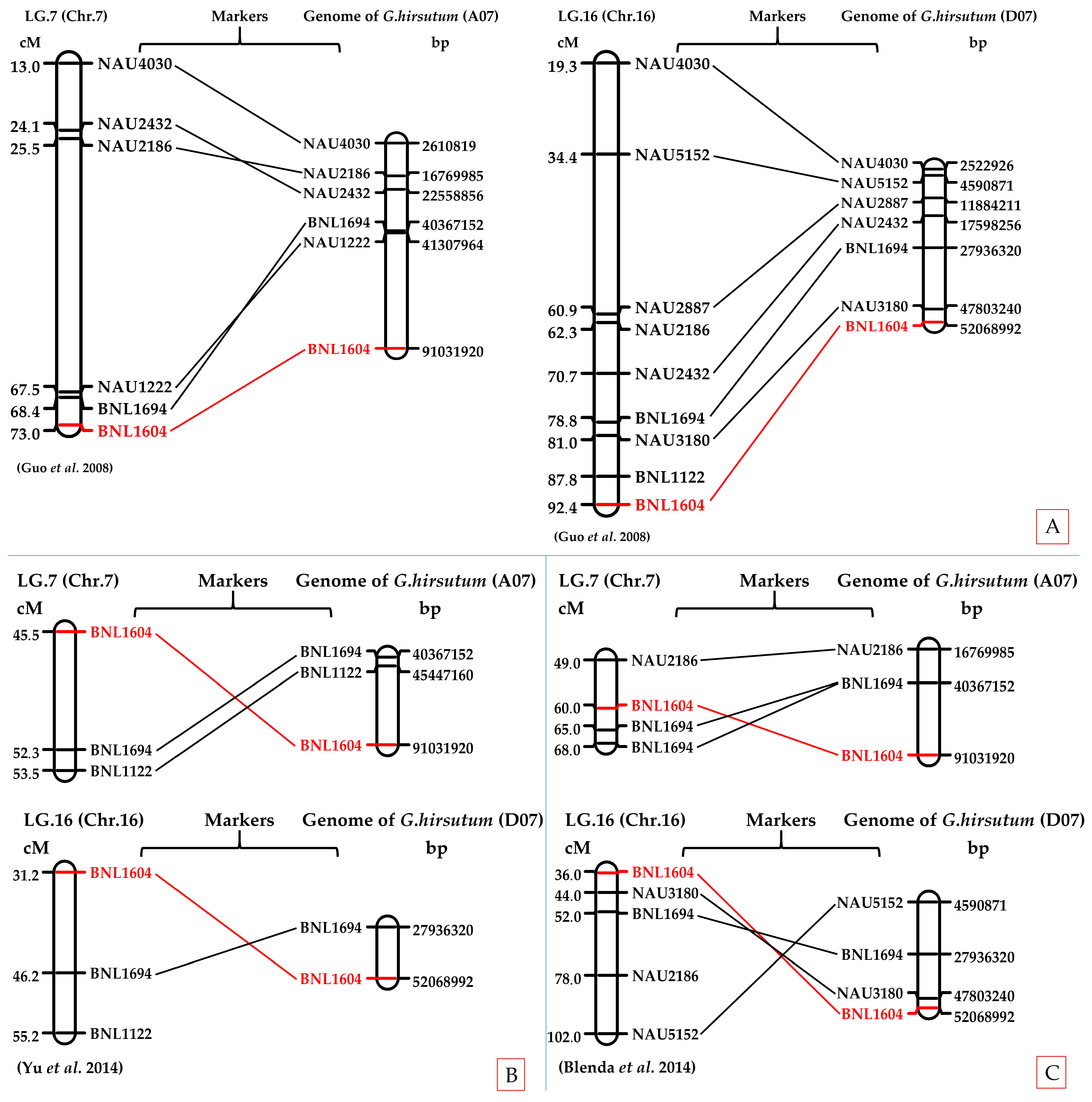 2.6. In Silico Chromosomal Localization of BNL1604 in Upland Cotton Genome