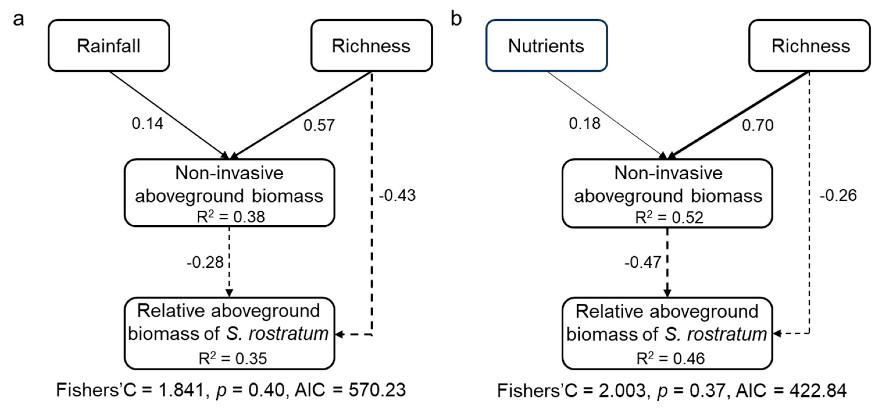 2.3. Direct and Indirect Effects of Species Richness and Soil Resources on S. rostratum