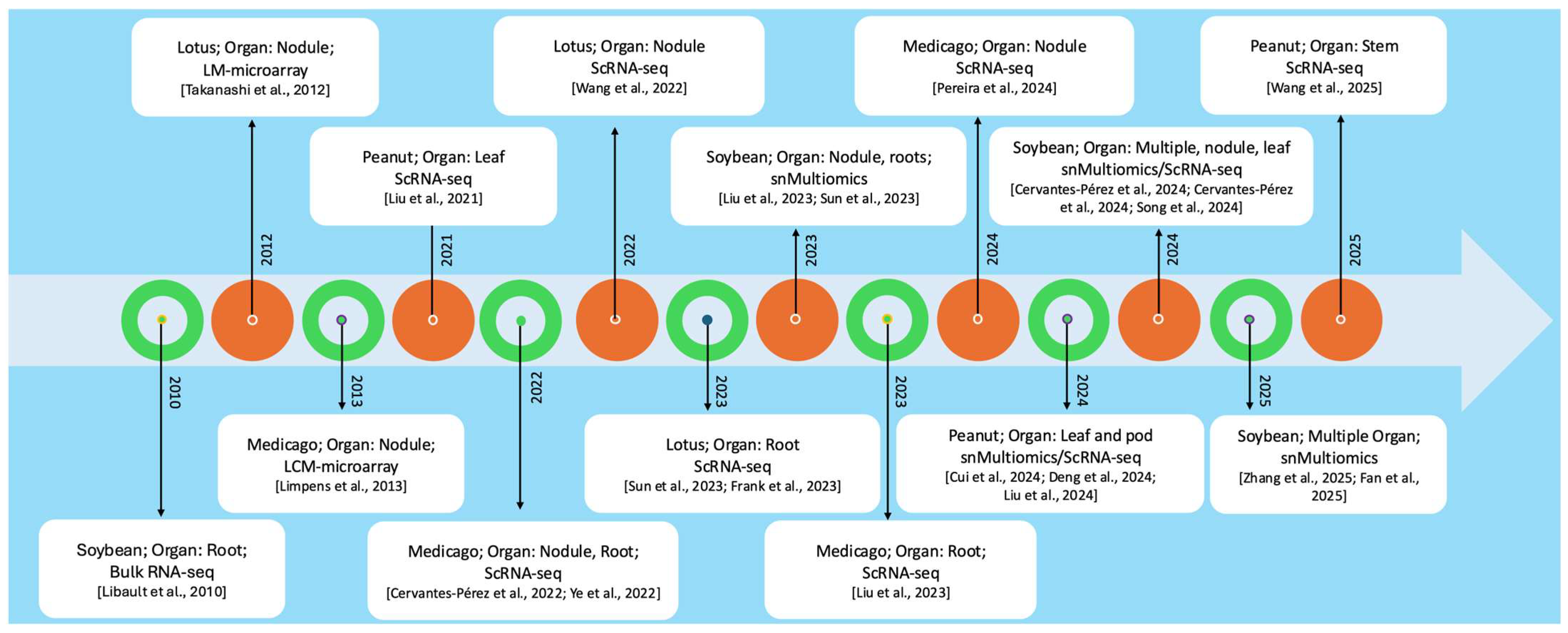 2.3. Timeline of the Use of Single-Cell/Single-Nucleus RNA-seq in Legume Research