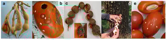 Erythrina livingstoniana Baker, known as the aloe coral tree, grows up to 25 m tall [25] (Figure 1d). Its seed pod bears 6–8 red seeds (Figure 1c,d). The species is native to southeastern Africa—Malawi, Mozambique, Zambia, Zimbabwe, and South Africa—where it grows in woodlands. It is cultivated as an ornamental in tropical gardens and parks and is also used in traditional medicine for wound treatment [16].
