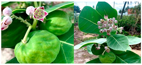 C. procera plays a significant role in ethnopharmacology due to its diversity of bioactive compounds and consequent biological activity. Extracts, fractions, and substances isolated from the species have been researched for their antiepileptic, antiulcerogenic, antiasthmatic, anti-inflammatory, anticancer, antimicrobial, and antipyretic properties, among others [29]. In addition, it is widely used in the commercial and industrial areas for biofuel production, since it is rich in hydrocarbons, biopesticides, due to its latex, as well as being used in cheese making [30].