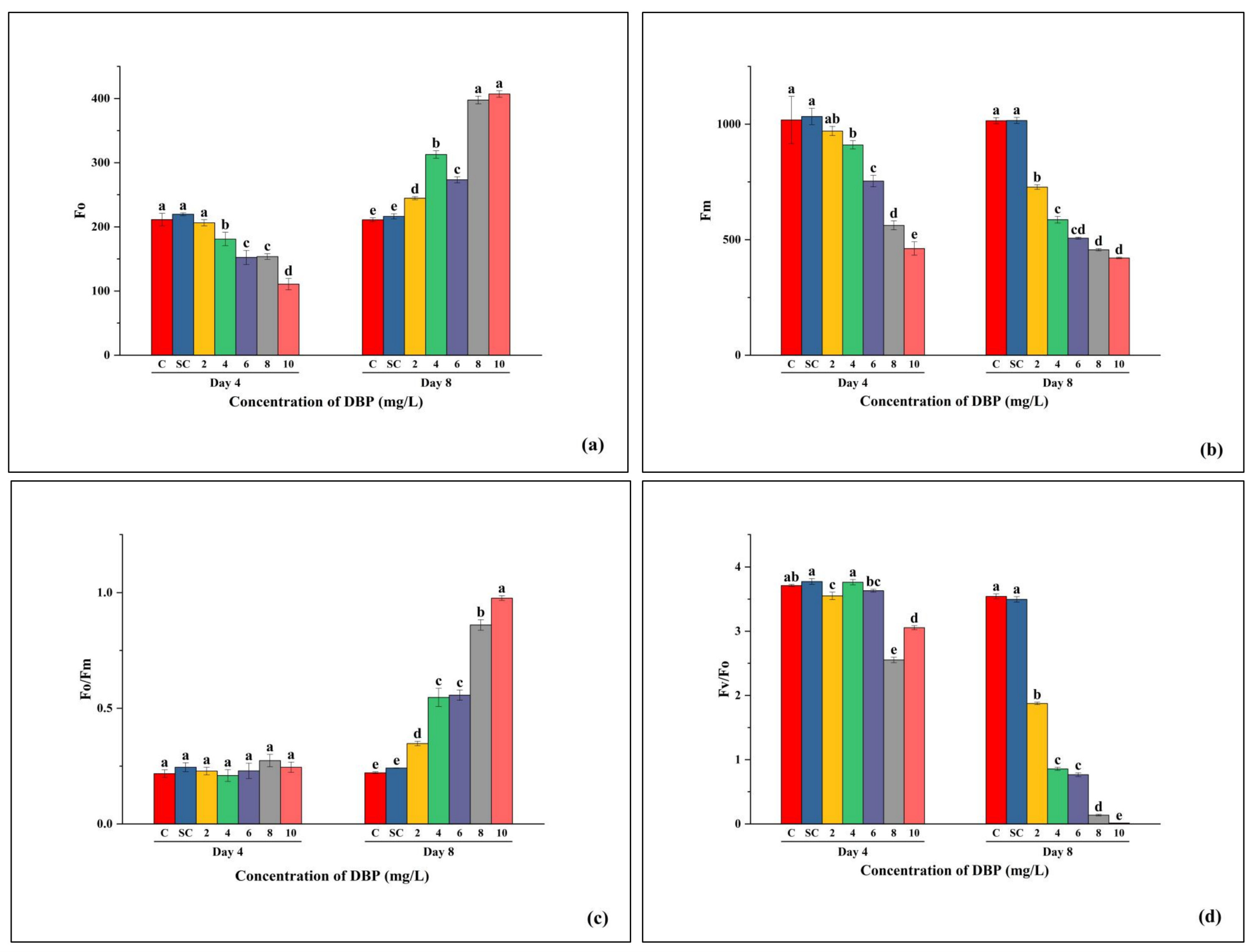 3.3.6. Quantum Yield of A. pinnata Under DBP Exposure