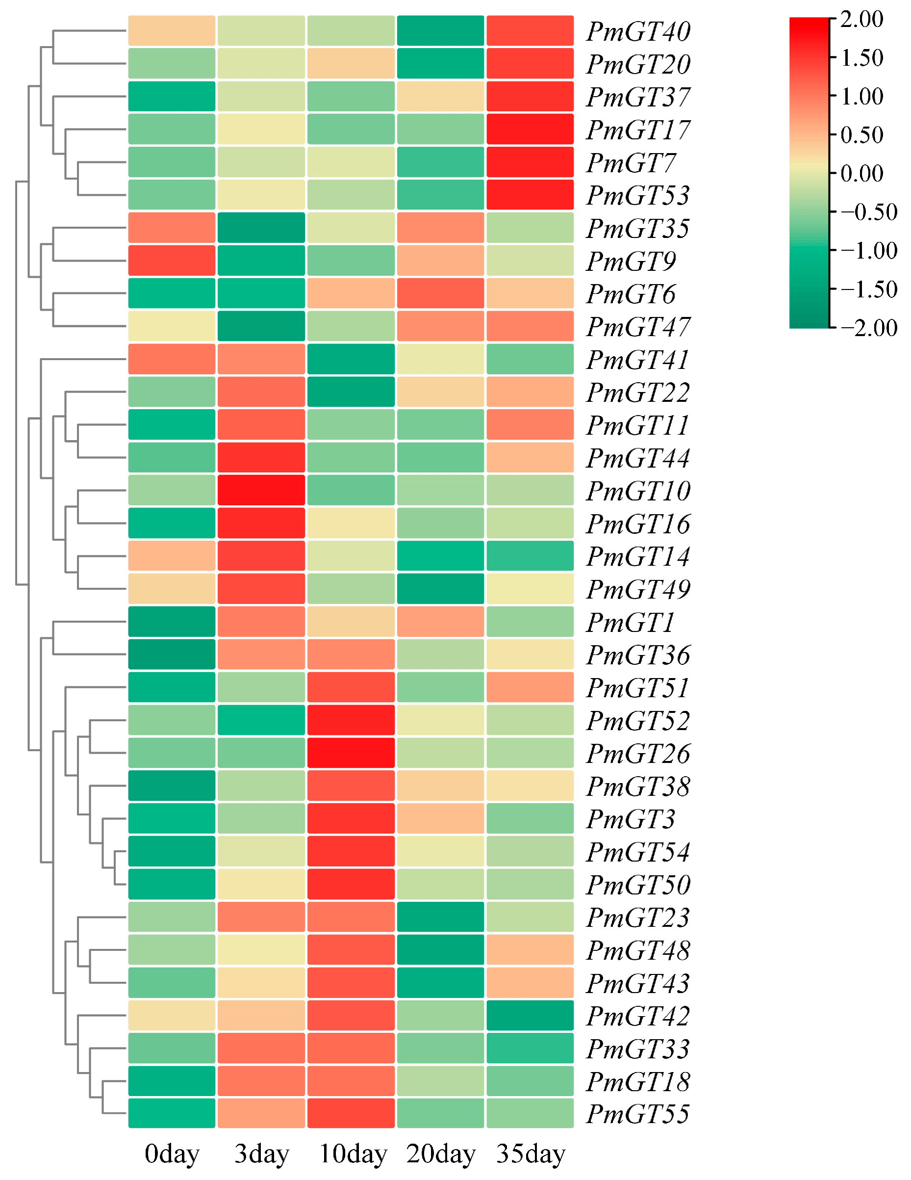 4.2. RNA-Seq Data Analysis and Expression Patterns of PmGTs