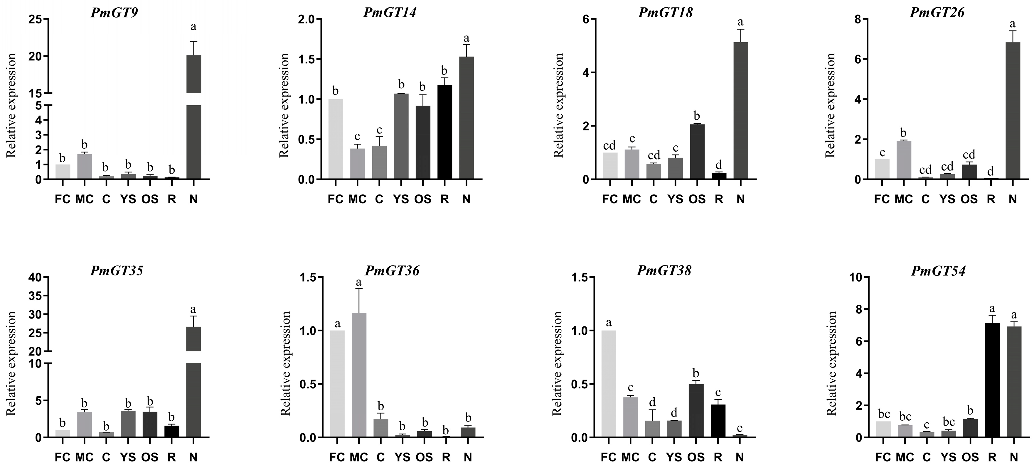 2.5. Expression Patterns of PmGTs Under Nematode Stress