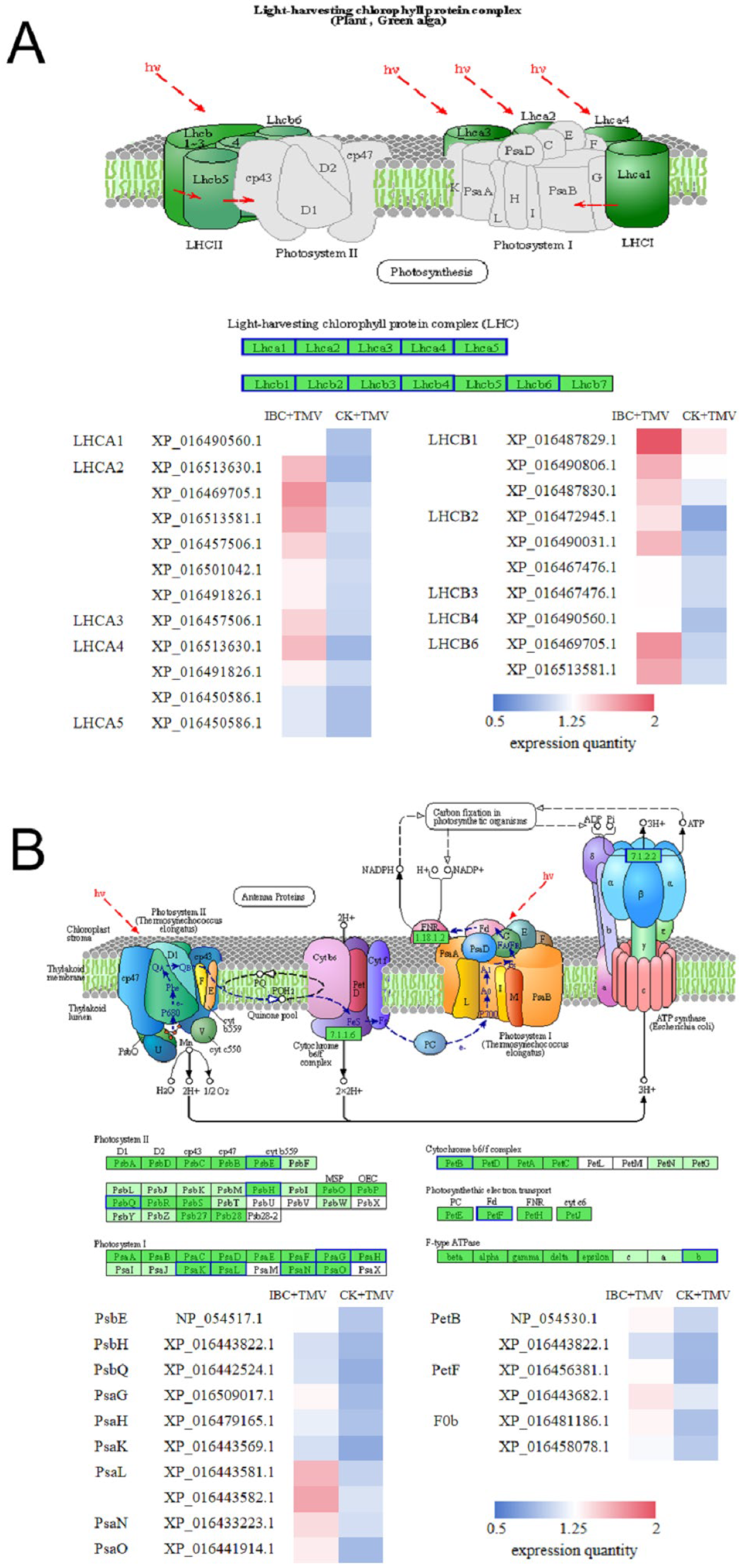 2.4. Analysis of DEPs in the Photosynthetic Antenna Proteins Pathway