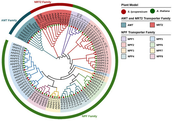 2.2. Phylogenetic Analysis of NPF, NRT2 and AMT Proteins