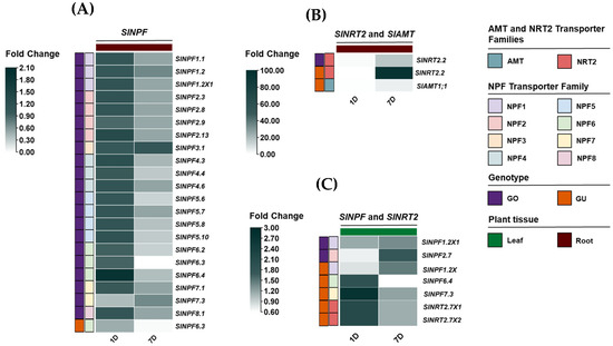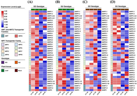 2.5. Expression Profiles of SlNPF, SlNRT2, and SlAMT Genes Under Nitrogen Deficiency Conditions