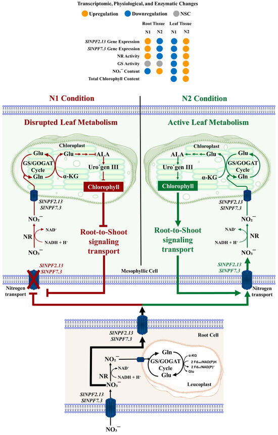 Ledesma-Valladolid JP, Niño-González MI, Malda-Barrera GX, Flores-Sosa ÁR, Pacheco-Aguilar JR, Nava-Morales GM, Mercado-Silva EM. Functional Insights into SlNPF, SlNRT2, and SlAMT Gene Families in Tomato: Leaf Metabolic Performance Controls Root-to-Shoot Nitrogen Partitioning. Plants. 2025; 14(23):3642. https://doi.org/10.3390/plants14233642