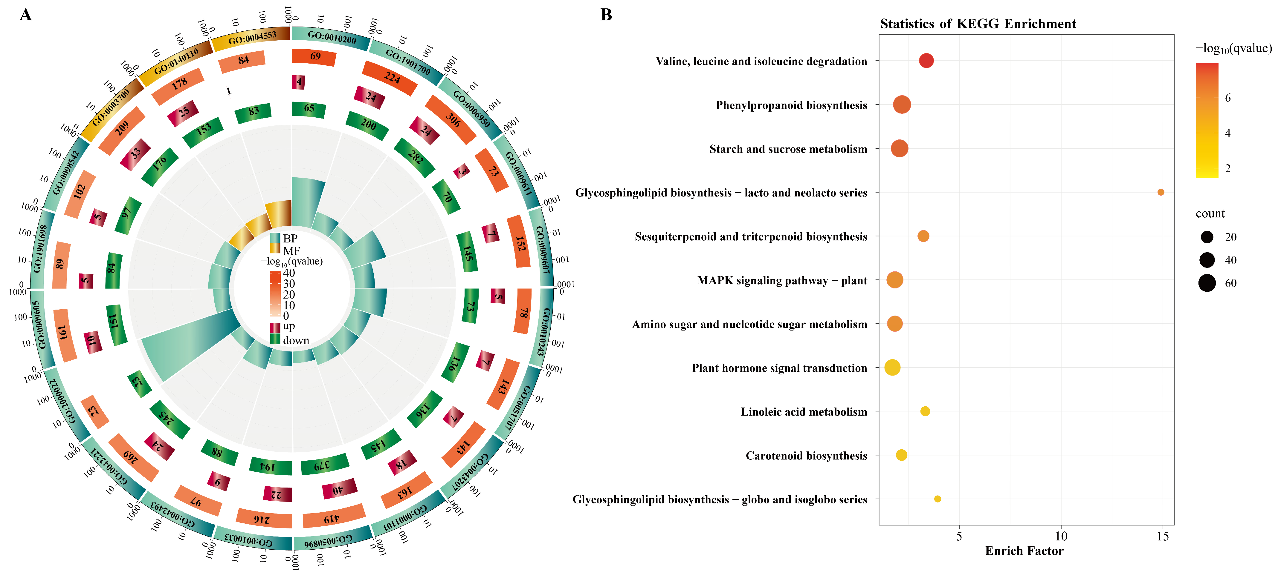 2.2. GO and KEGG Enrichment Analysis of DEGs