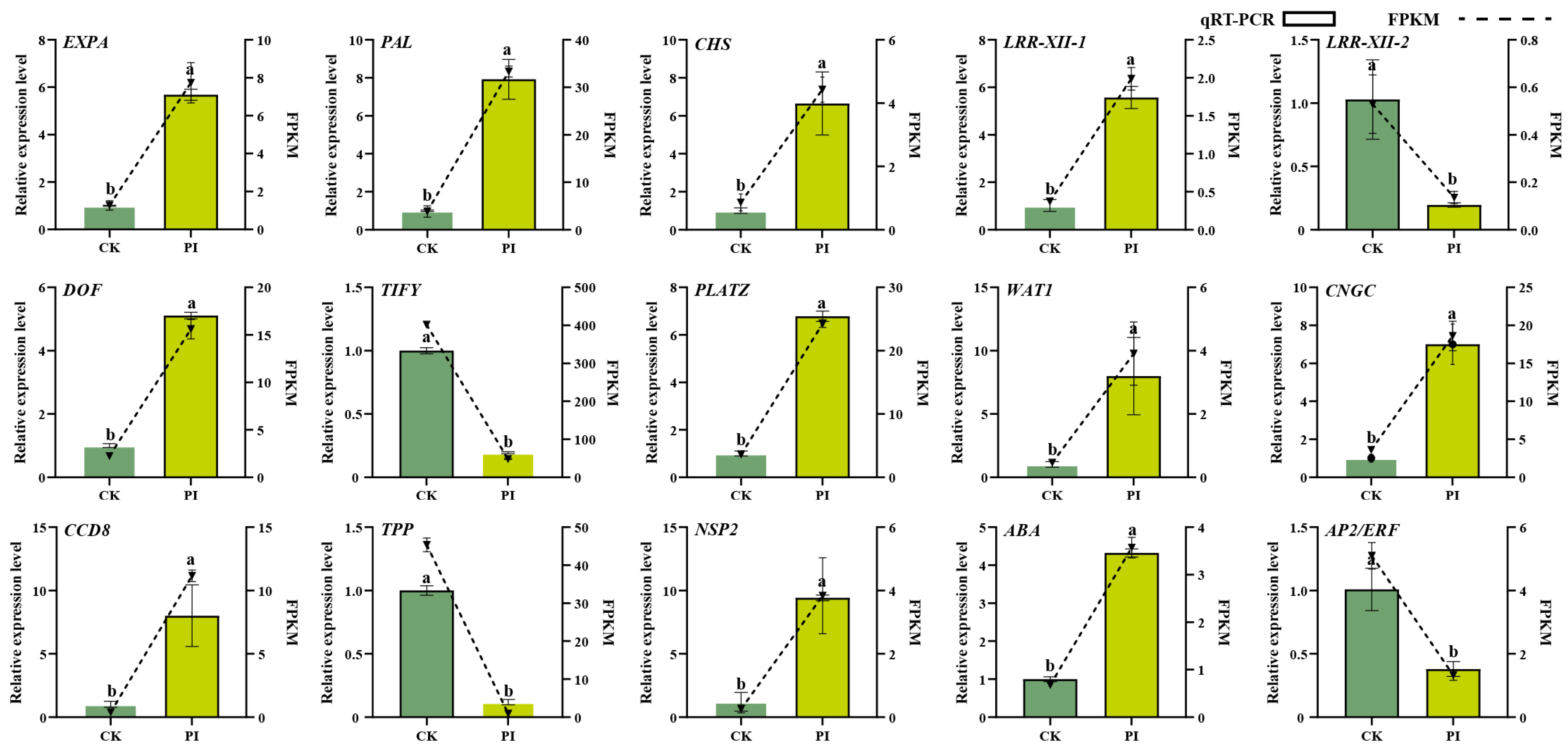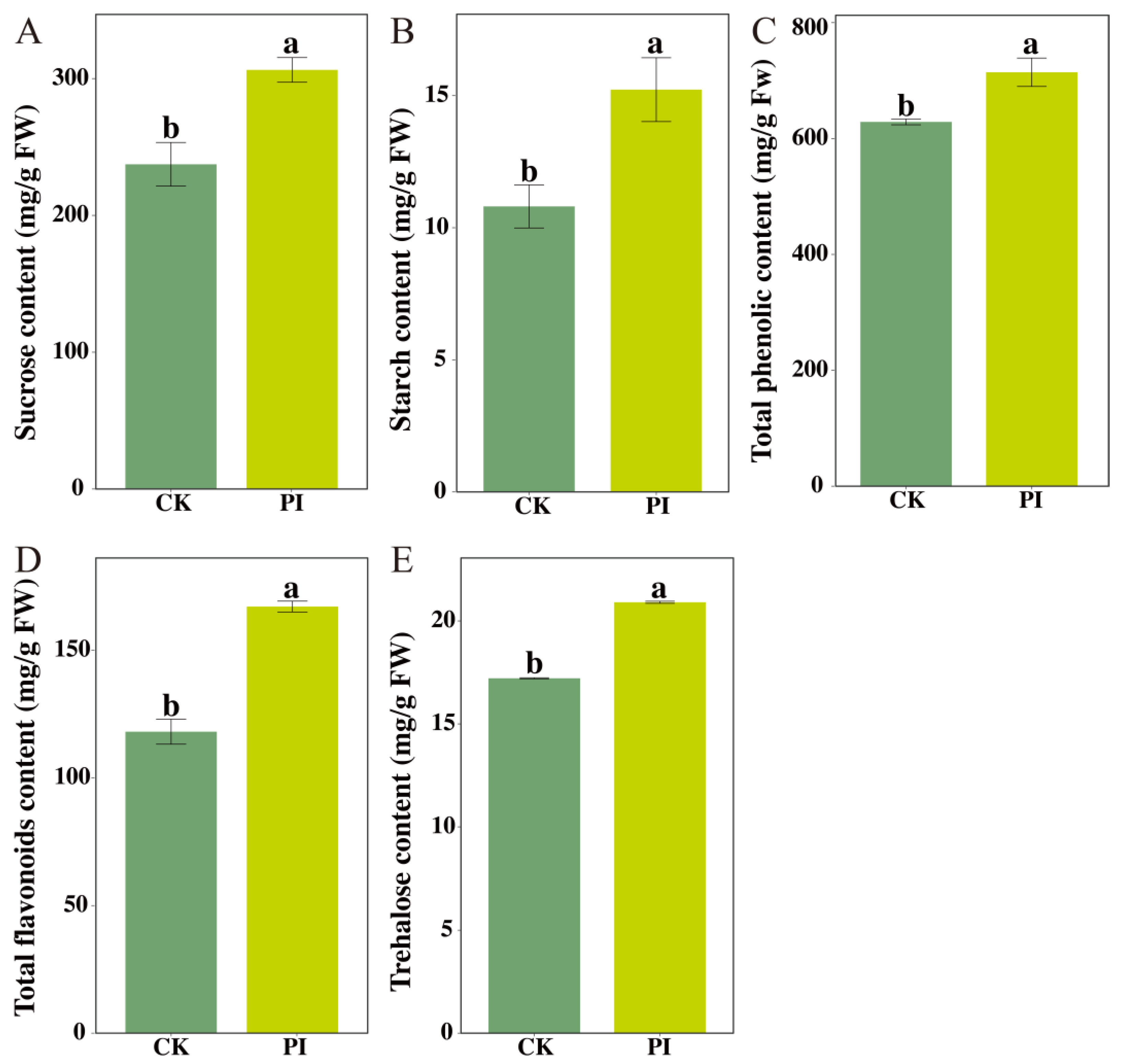2.6. Determination of Endogenous Phytohormone Contents in CK and PI Blueberry Roots