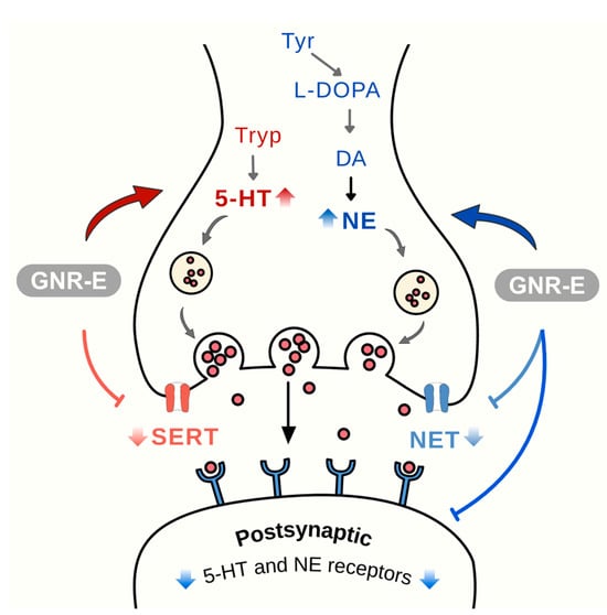 2.5. Effect of GNR-E on CMS-Induced Decrease in 5-HT and NE Levels