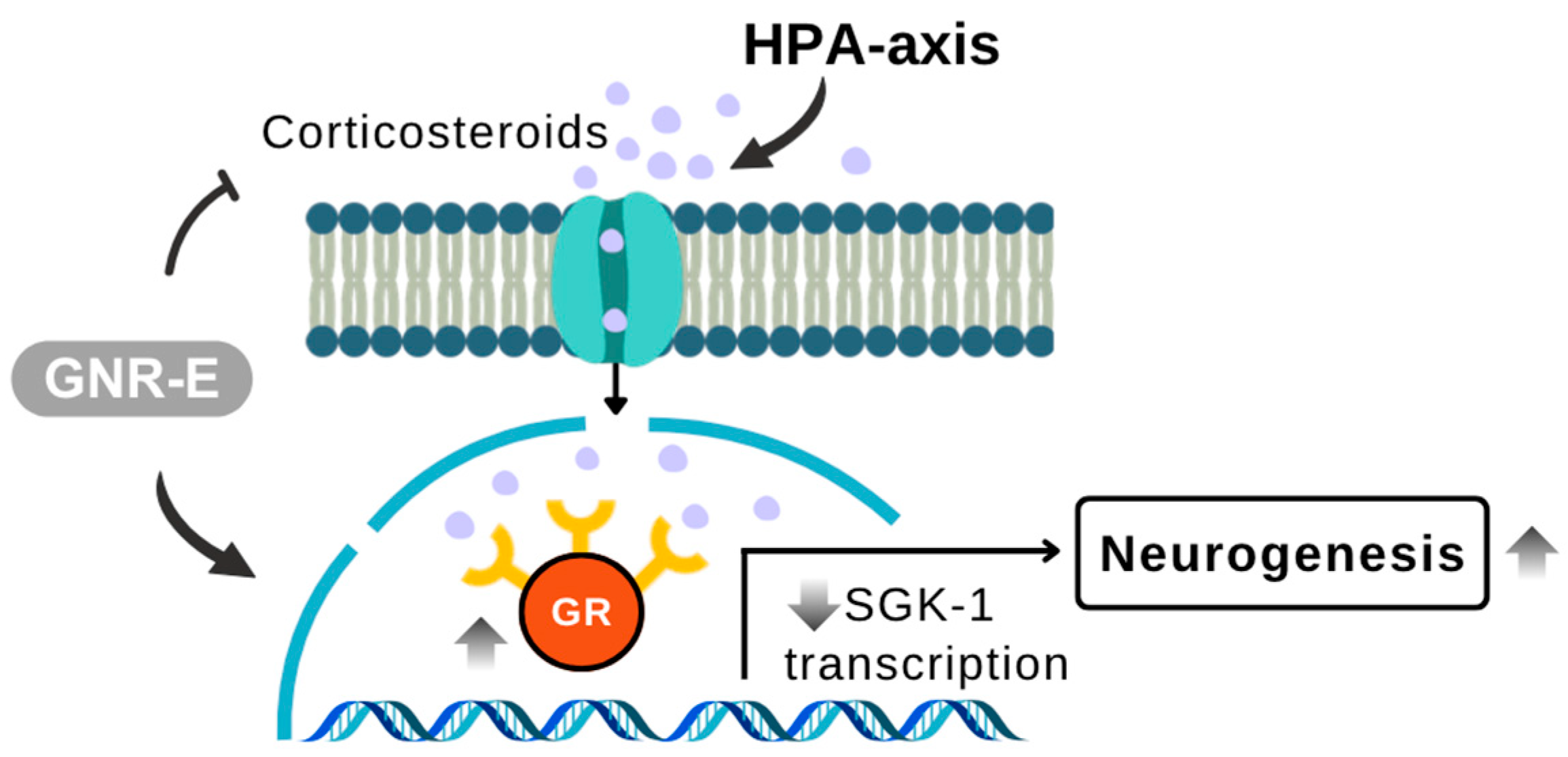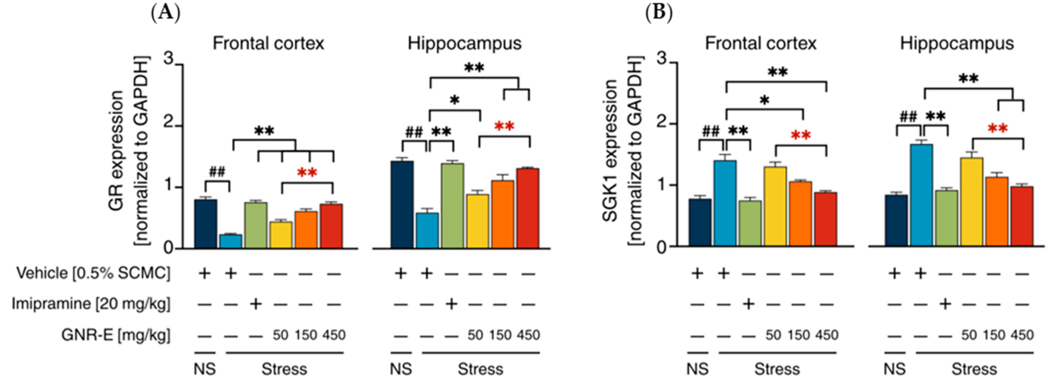 2.4. Effect of GNR-E on CMS-Induced Increase in Serum Corticosterone Levels