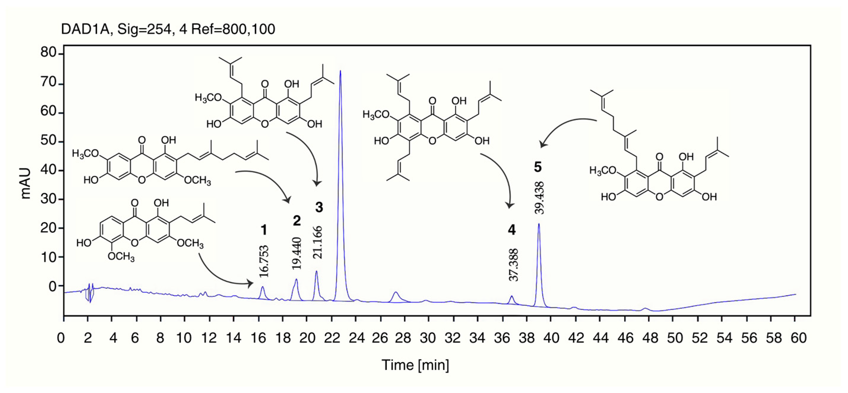 - Ruan, J.; Zheng, C.; Liu, Y.; Qu, L.; Yu, H.; Han, L.; Zhang, Y.; Wang, T. Chemical and biological research on herbal medicines rich in xanthones. Molecules 2017, 22, 1698. [Google Scholar] [CrossRef]