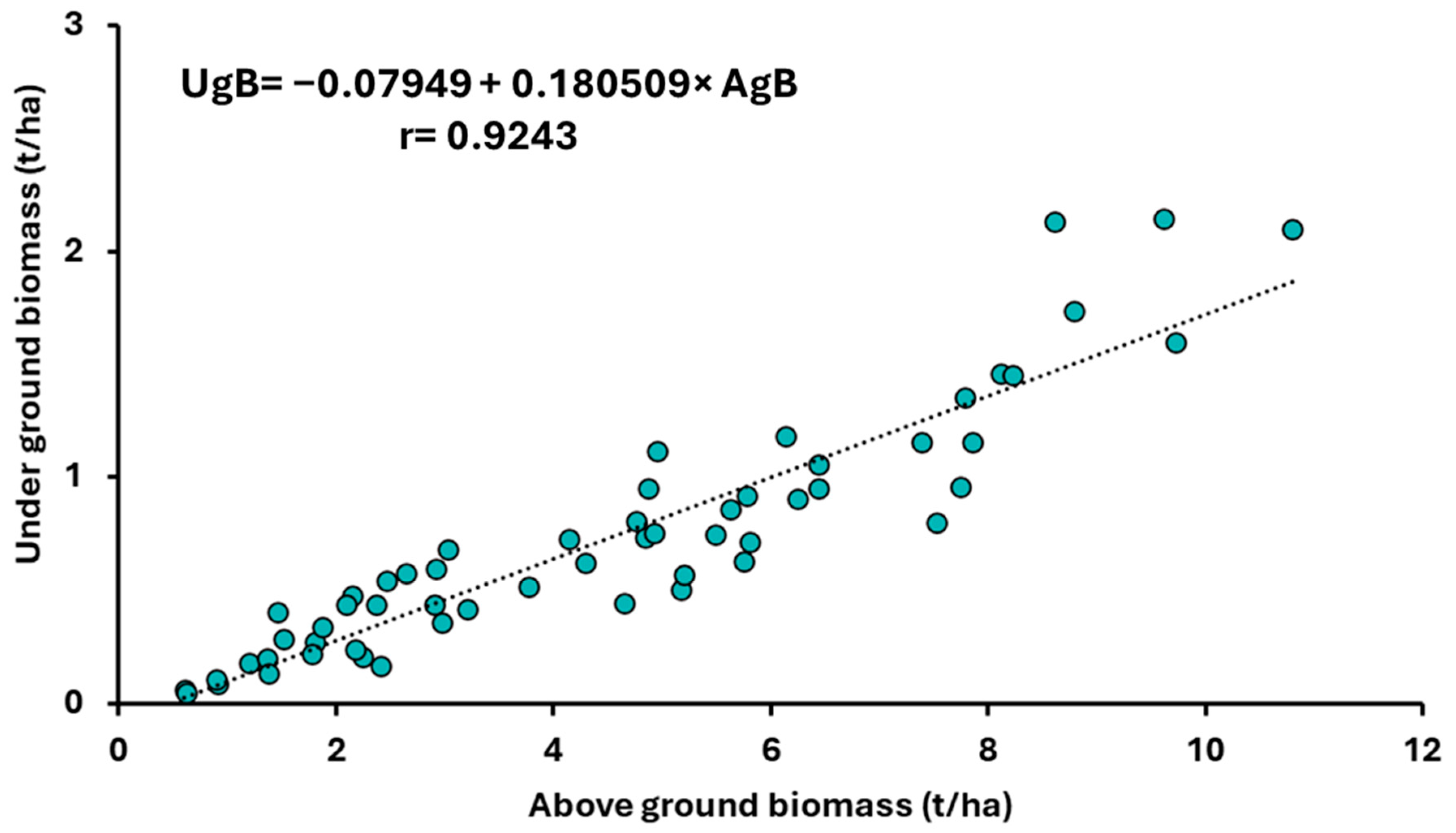 | Ratio of Aboveground and Underground Biomass (AgB/UgB) | |||||||||||||||||