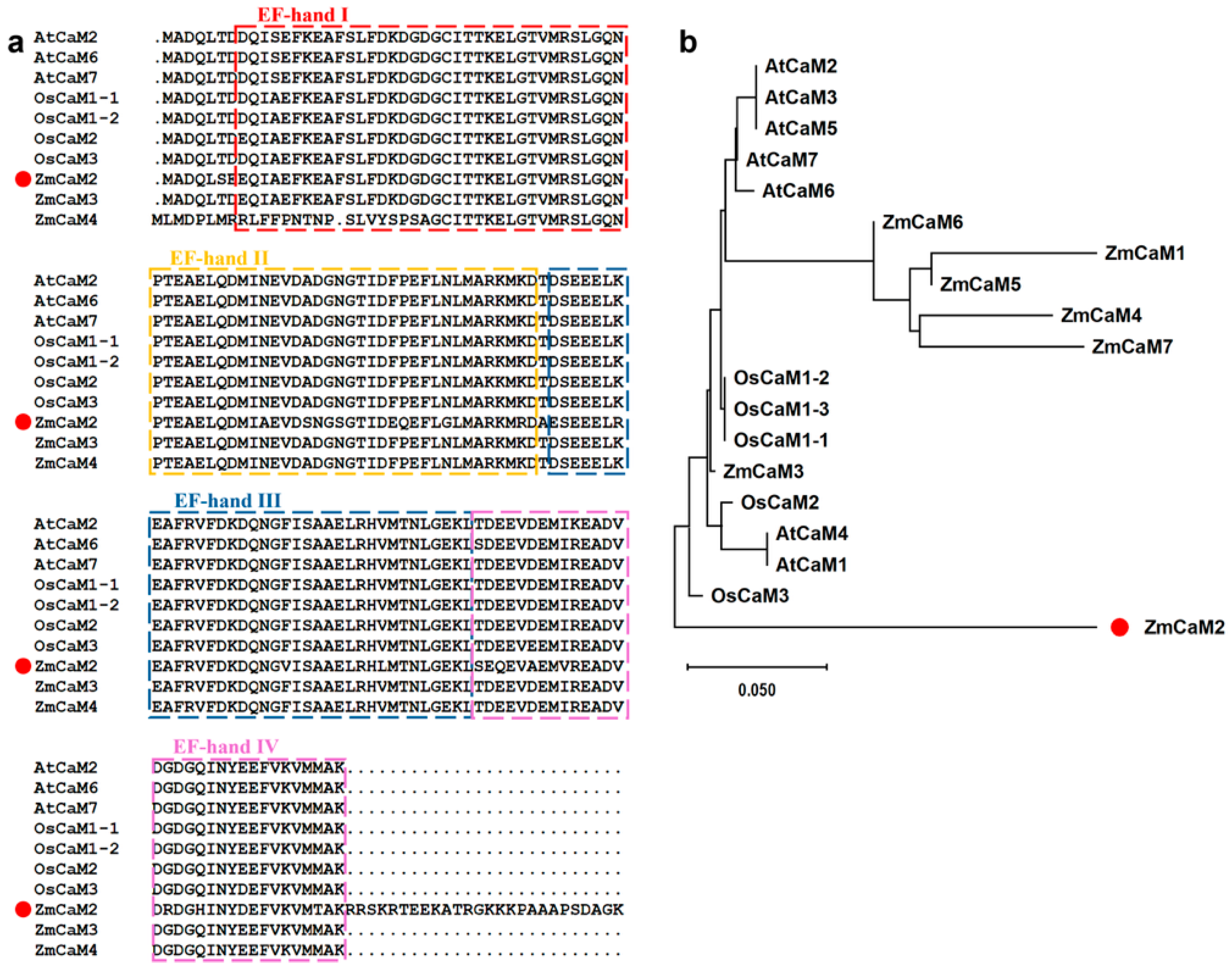 4.3. ZmCaM2 Cloning and Sequence Analysis