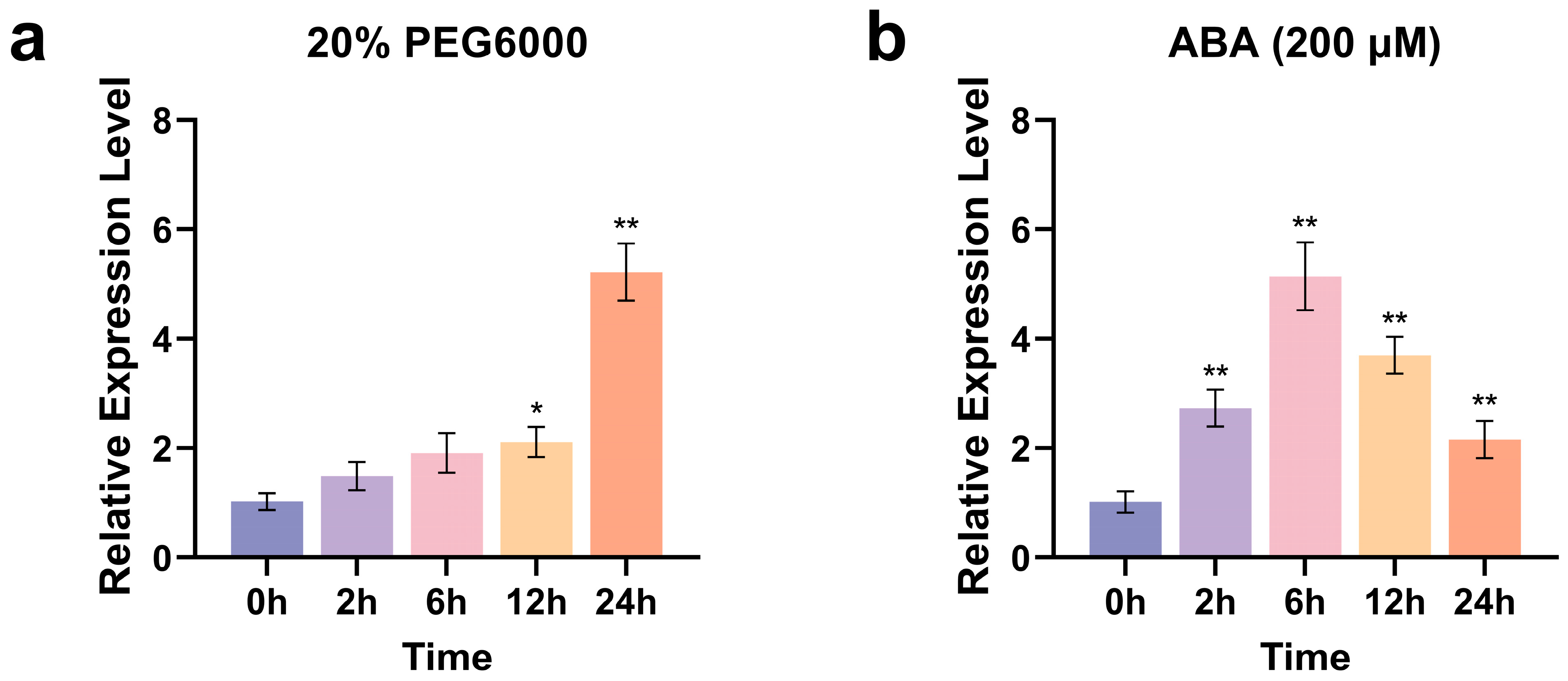 2.2. ZmCaM2 Is Involved in the Response to PEG and ABA Induced Stress