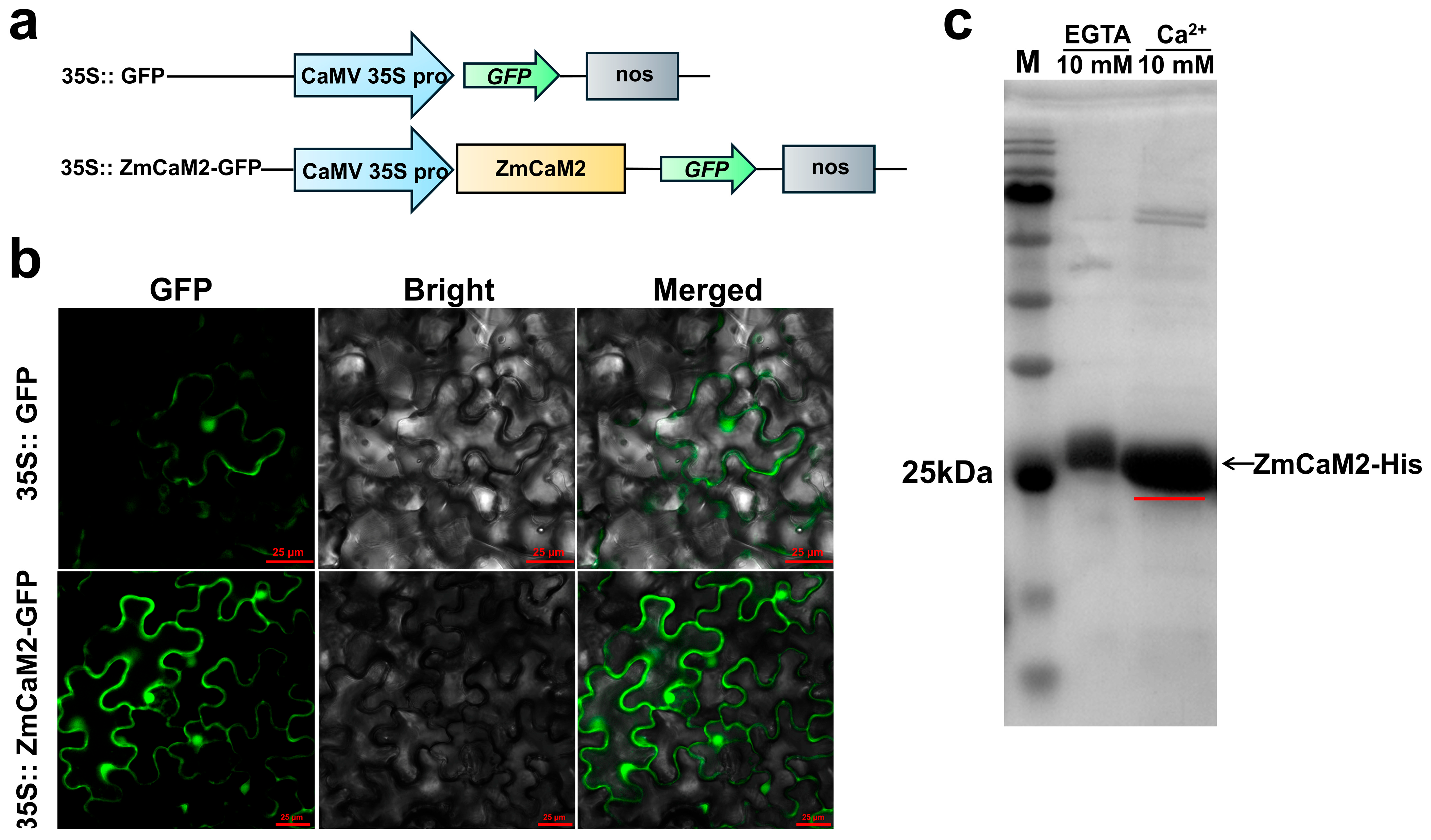 2.3. ZmCaM2 Is Localized to the Nucleus and Plasma Membrane and Can Bind Ca2+