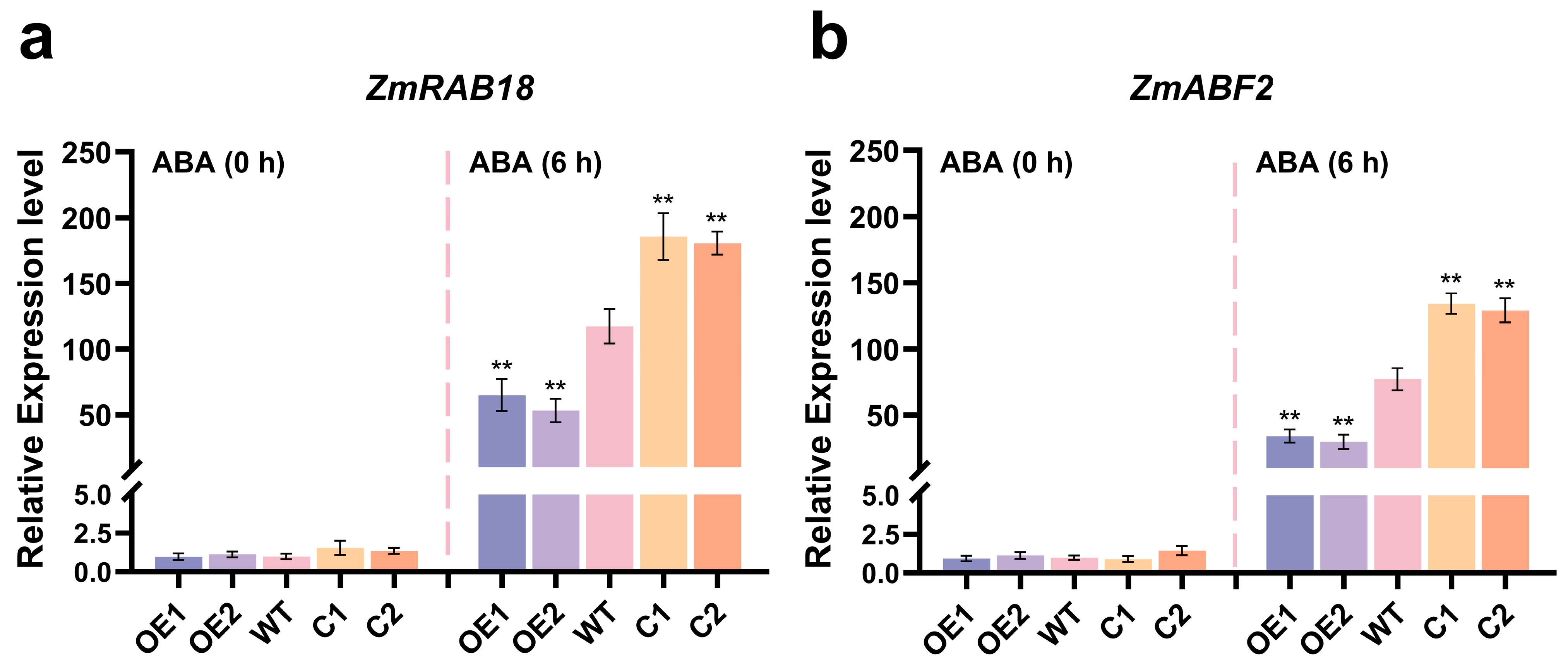 2.6. ZmCaM2 Negatively Regulates ABA Signal Transduction Pathway