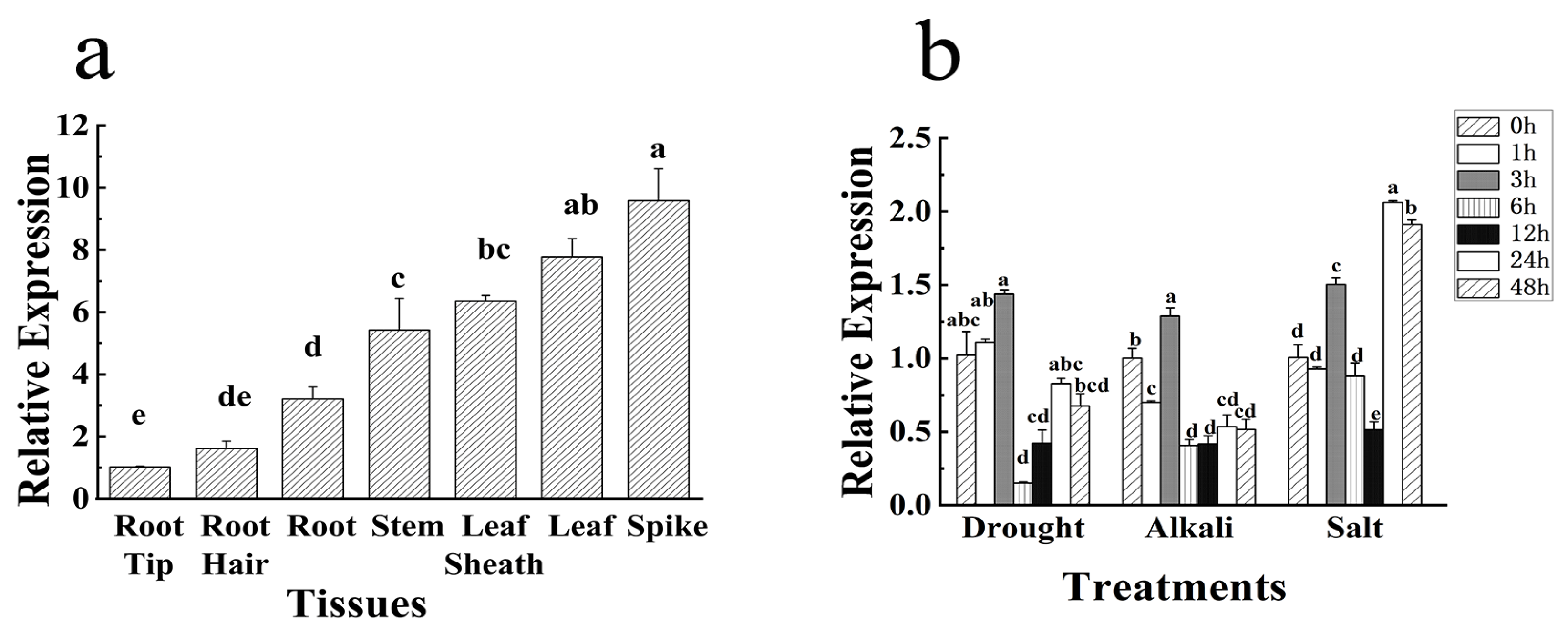 - Sharma, P.; Mishra, S.; Pandey, B.; Singh, G. Genome-wide identification and expression analysis of the NHX gene family under salt stress in wheat (Triticum aestivum L.). Front. Plant Sci. 2023, 14, 17. [Google Scholar] [CrossRef]