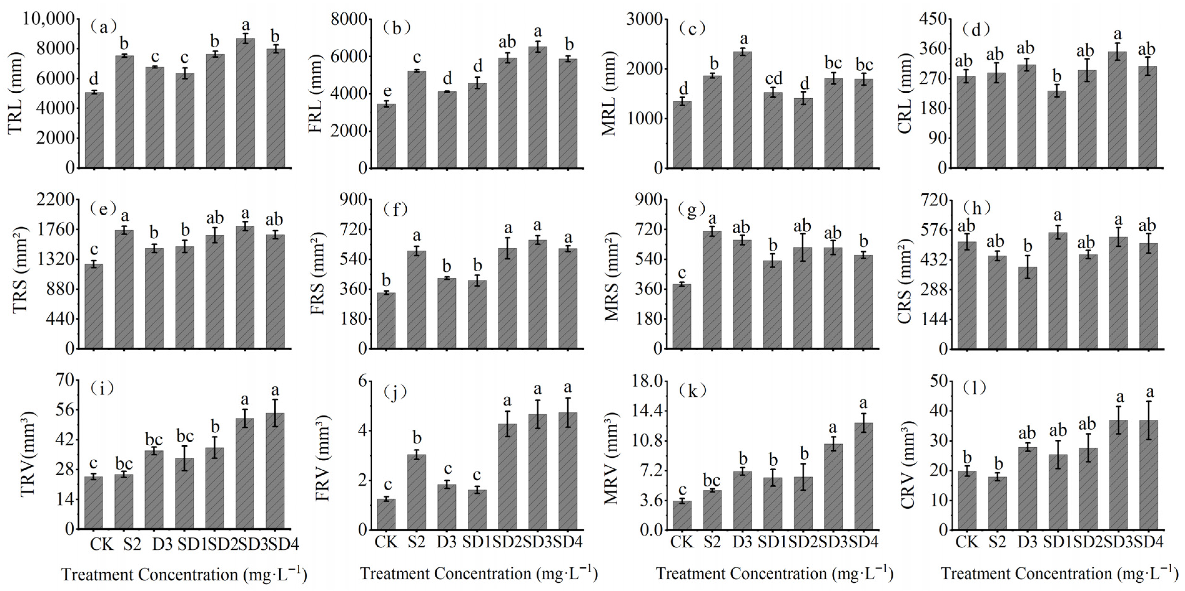 | Traits | Root System Classification | CK | S2 | D3 | SD1 | SD2 | SD3 | SD4 |