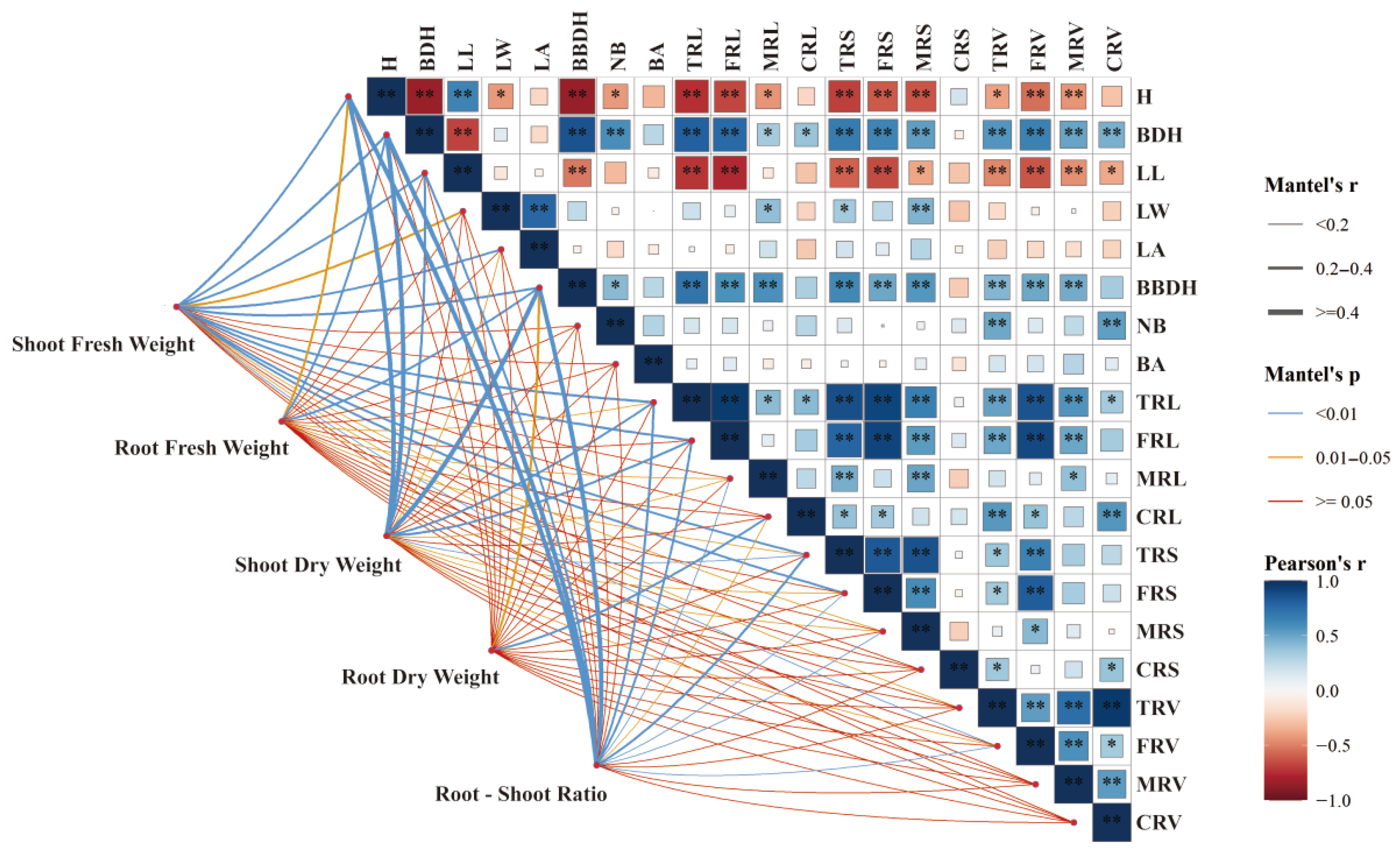 2.5. Correlation Analysis of Morphological Traits Under Different Treatments