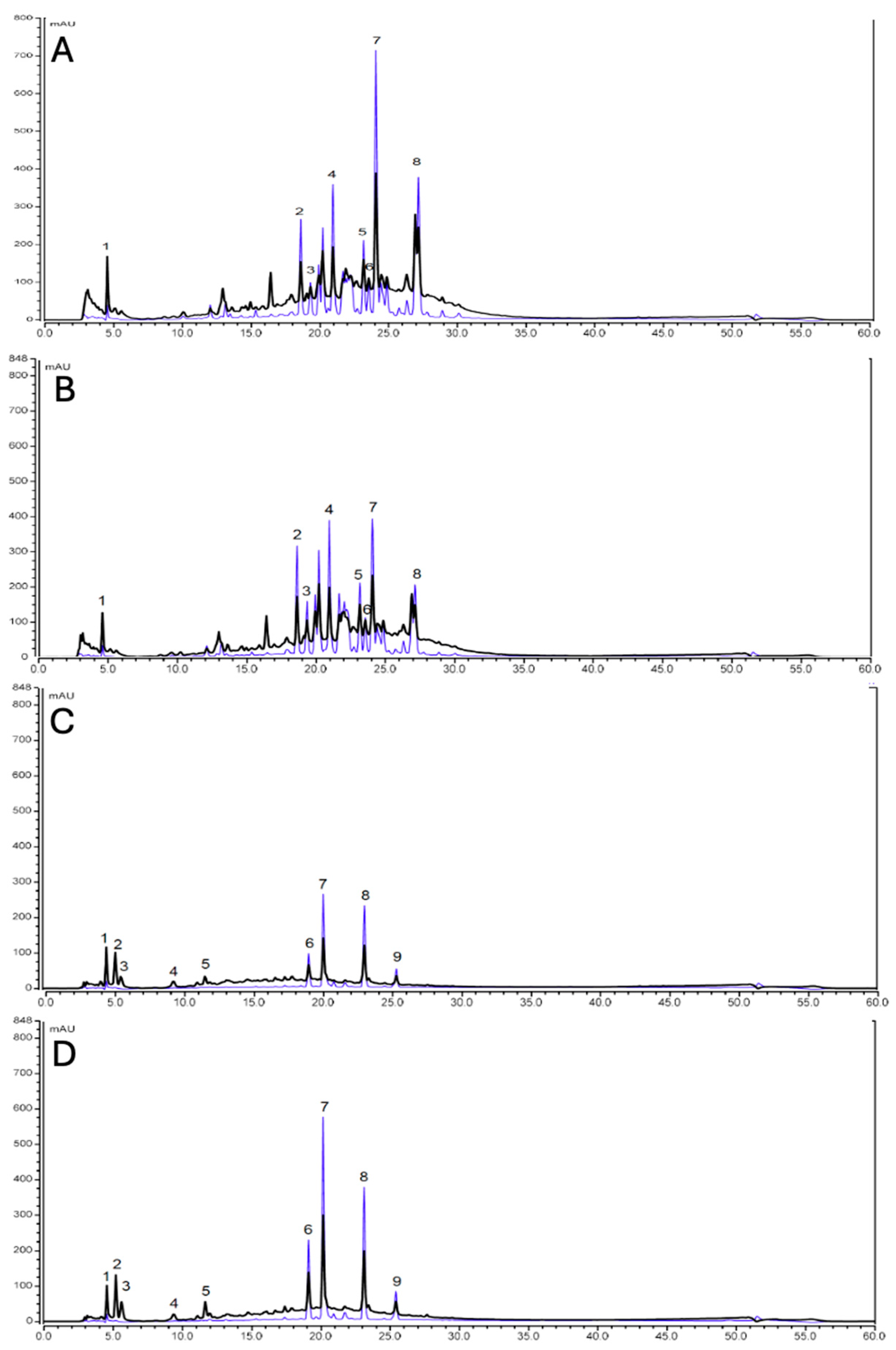 2.2. Phytochemical Analysis of Aqueous Extracts