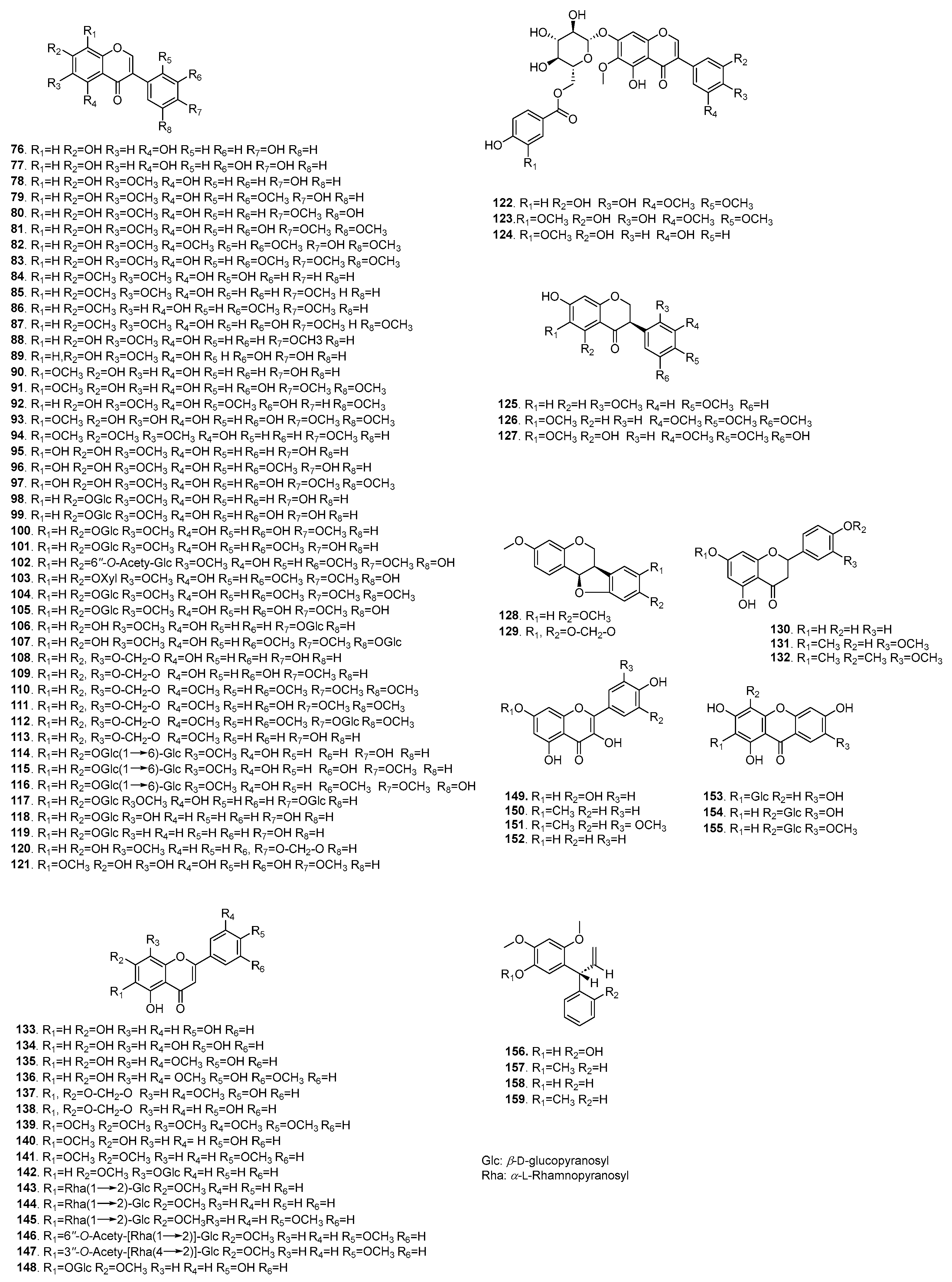 | 77 | 3′-Hydroxygenistein | C15H10O6 | Seeds | EtOAc | [55] |