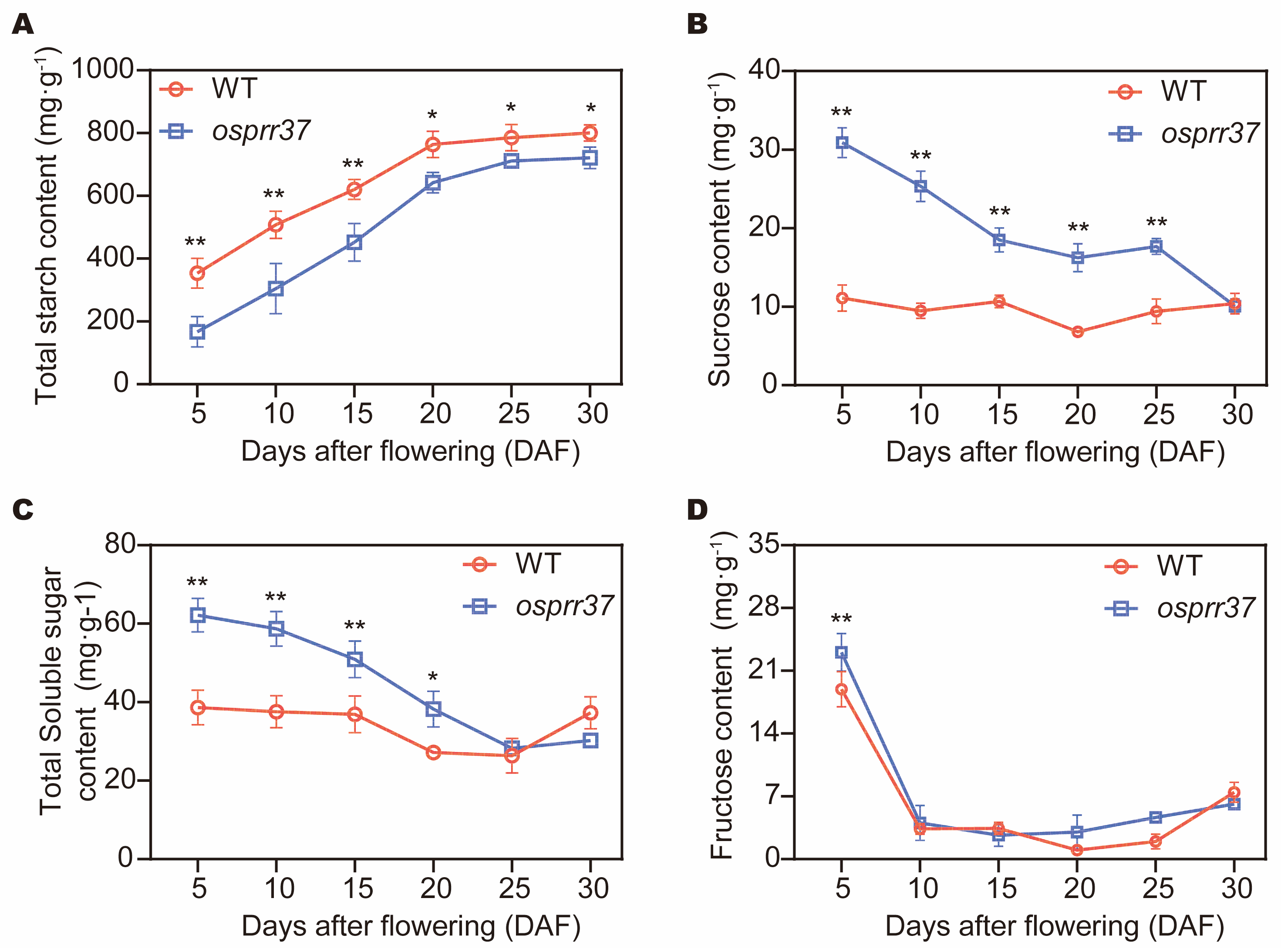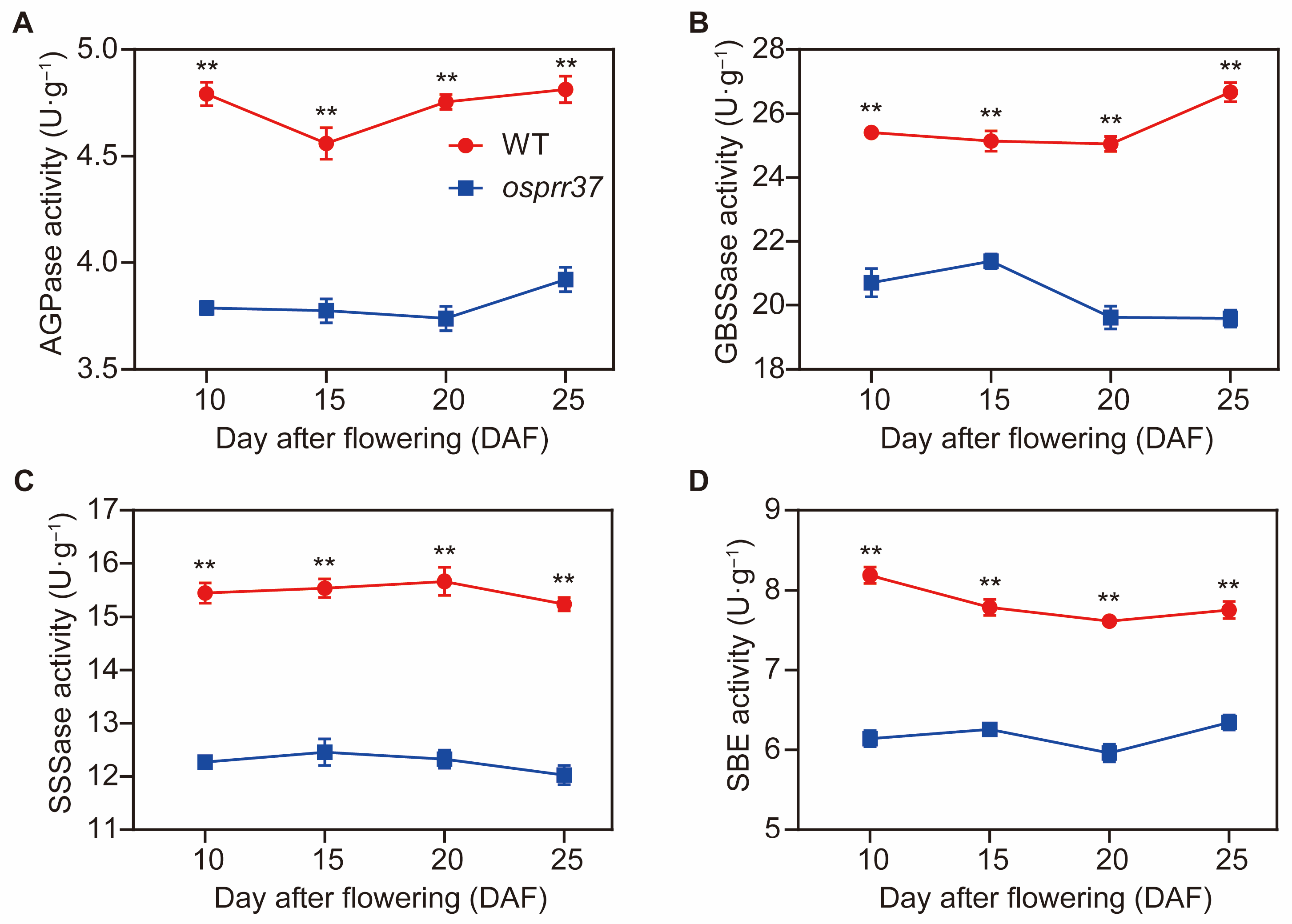 | osprr37 | 4.73 ± 0.01 | 6.40 ± 0.47 | 41.02 ± 0.30 ** | 52.58 ± 0.17 | 4.02 ± 0.04 | 4.95 ± 0.02 |