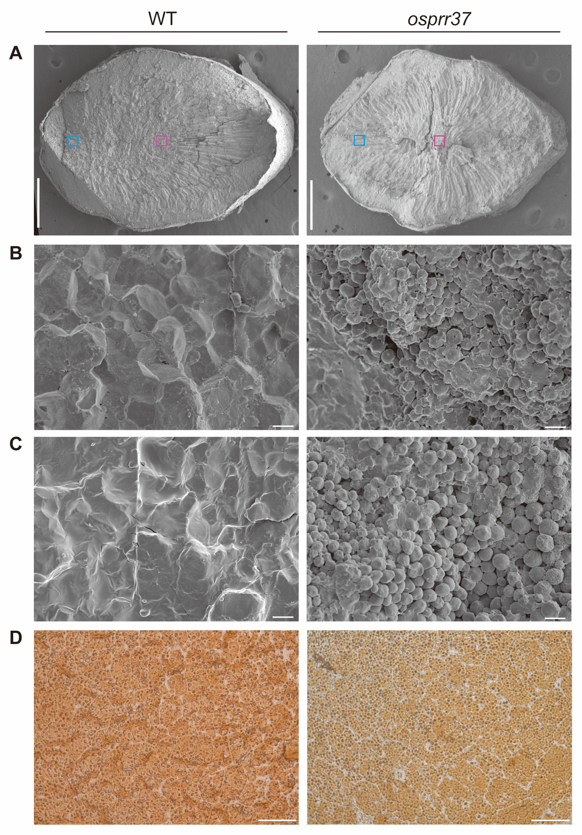2.5. The Structure of Starch Compound Granules Is Abnormal in osprr37 Endosperm Cells