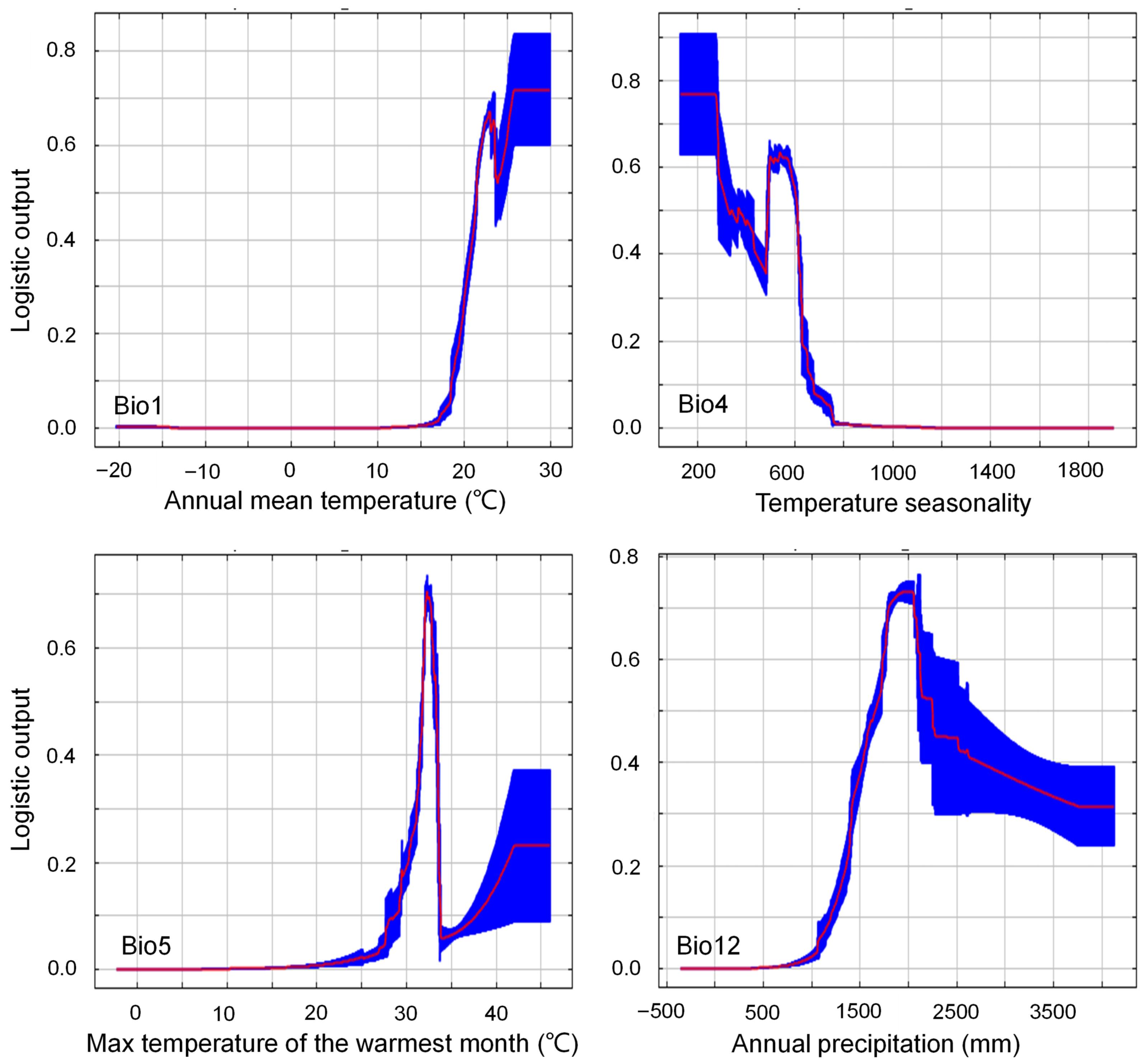 - Wu, Y.; Yan, L.; Shen, H.; Guan, R.; Ge, Q.; Huang, L.; Rohani, E.R.; Ou, J.; Han, R.; Tong, X. Potentially suitable geographical area for Pulsatilla chinensis Regel under current and future climatic scenarios based on the MaxEnt model. Front. Plant Sci. 2025, 16, 1538566. [Google Scholar] [CrossRef]