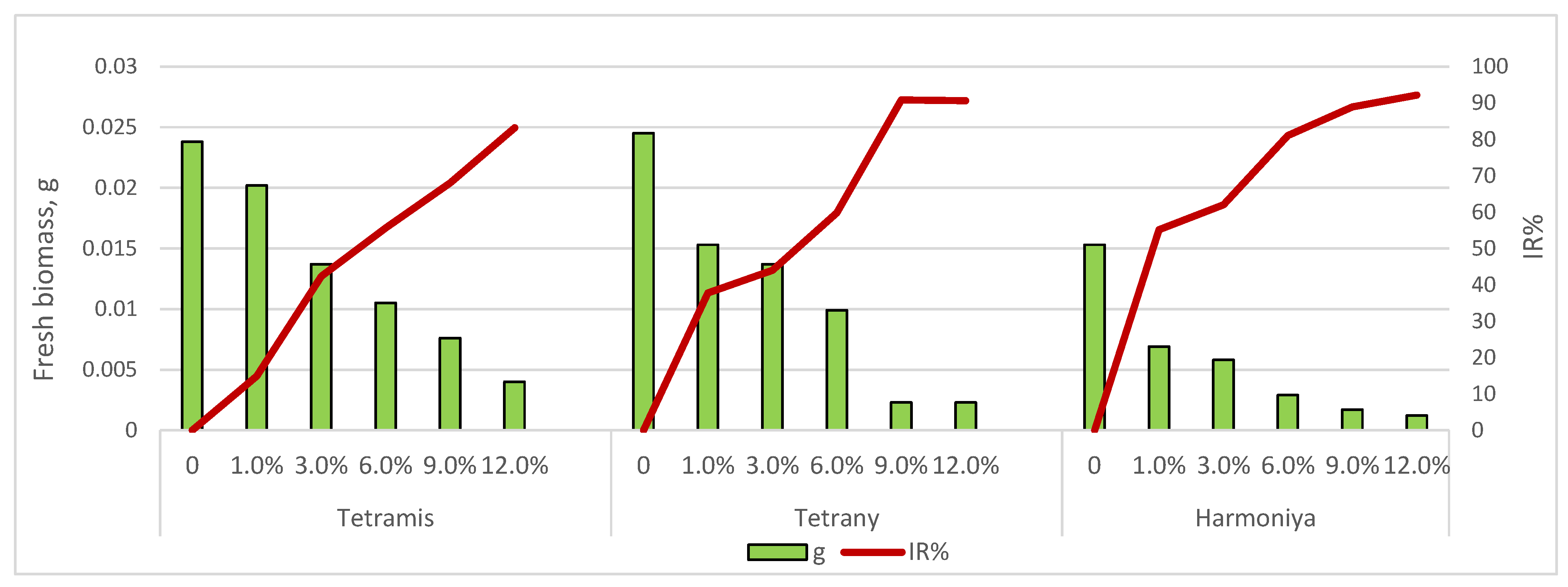 | Genotype/ Variety | Seed Germination | Length, cm | Seedling Biomass, g | ||
