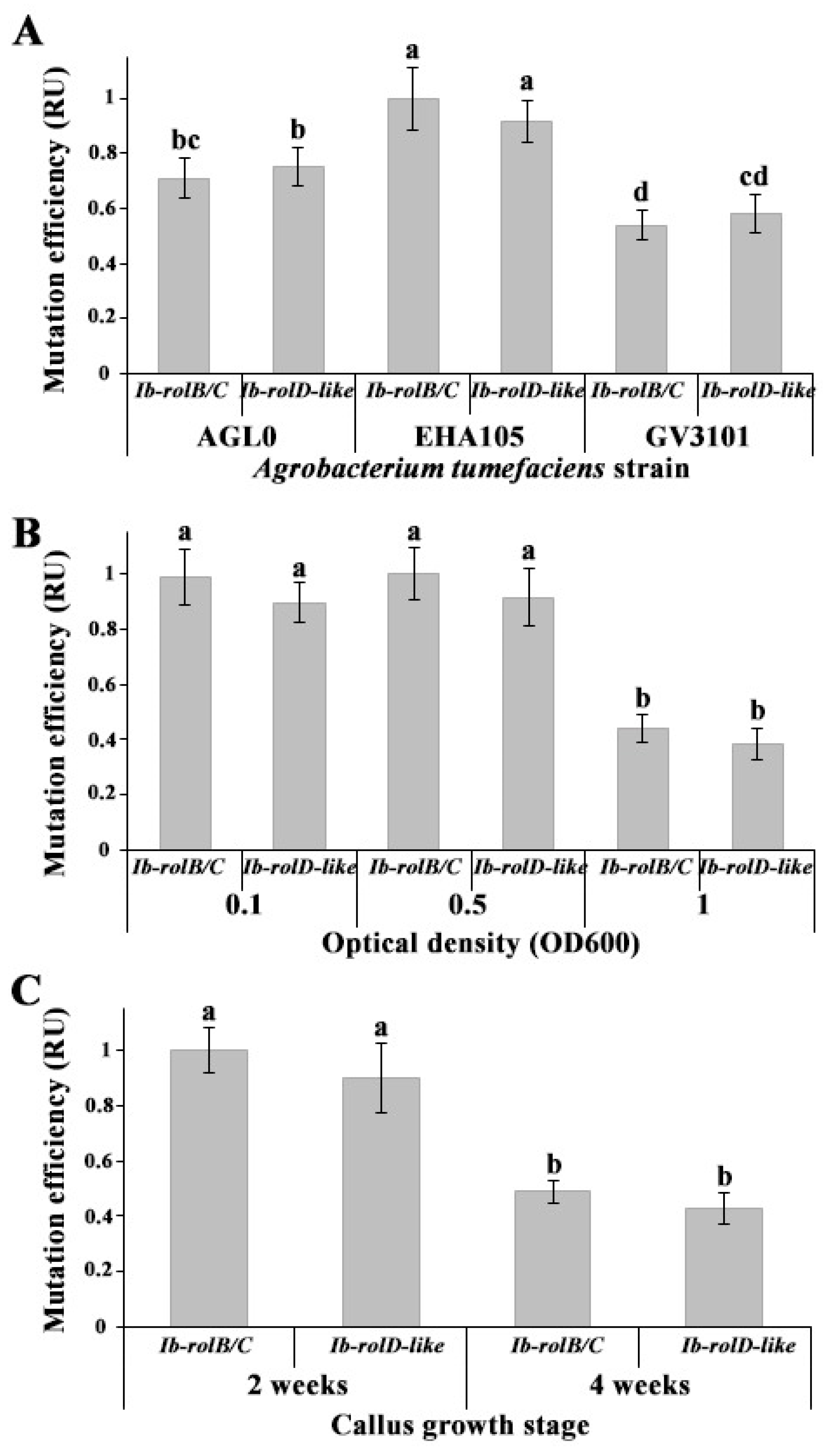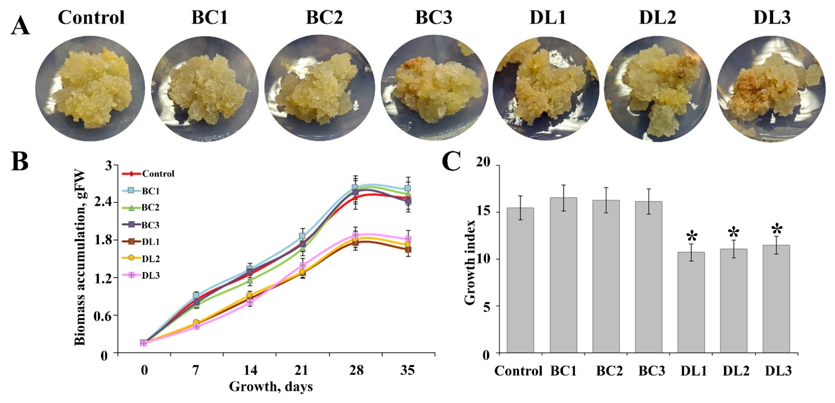 2.3. Impact of Ib-rolB/C and Ib-rolD-like Gene Mutations on the Growth of Ipomoea batatas Callus Cultures