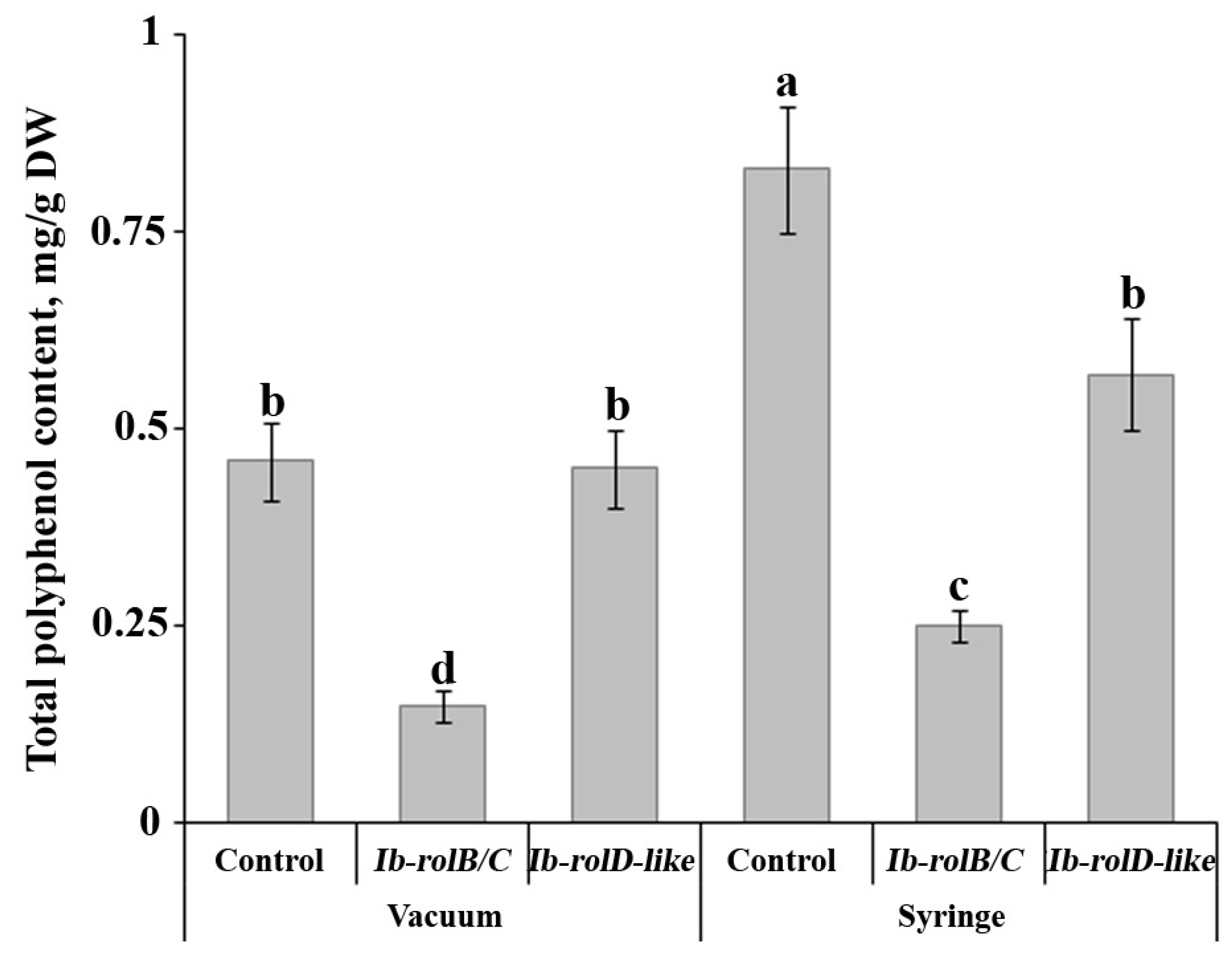 2.6. Effect of Ib-rolB/C and Ib-rolD-like Gene Mutations on Phenolic Compound Accumulation in Planta