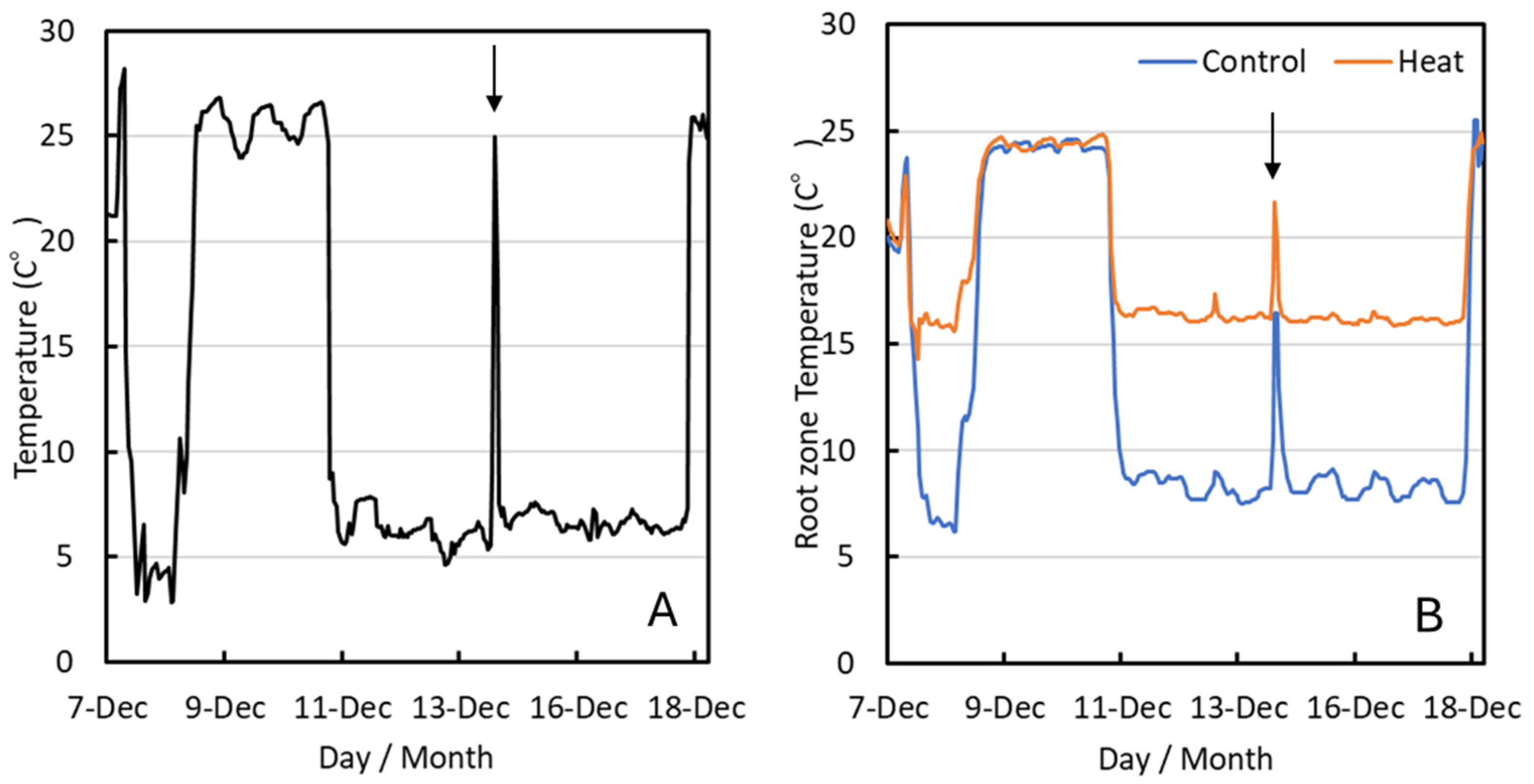 4.2. Cold Treatment and Root-Zone Heating Treatments