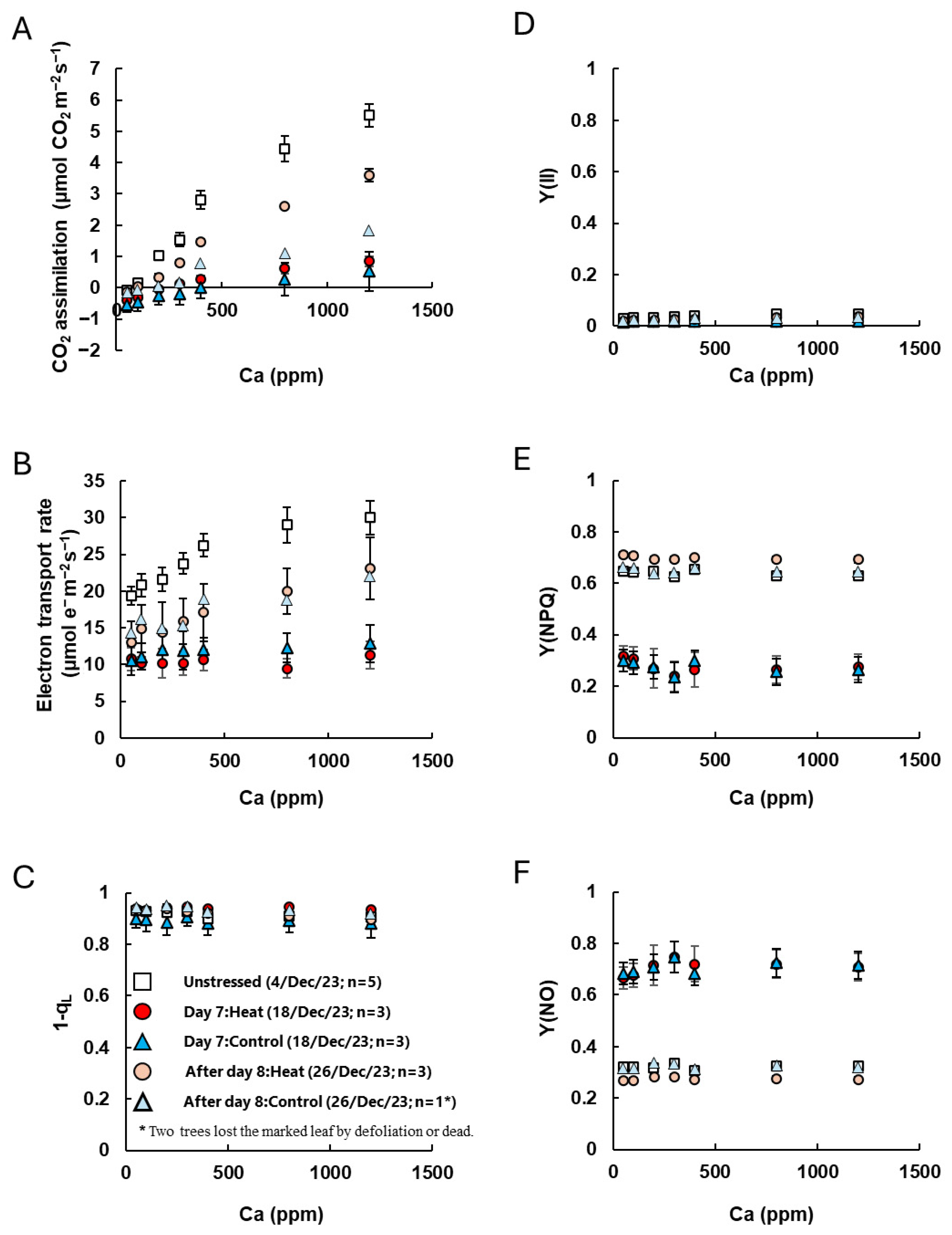 | CO2 Assimilation (μmol CO2 m−2 s−1) | Fo | Fm | Fv | Fv/Fm | Fs | Fm′ | Y(II) | Electron Transport Rate (μmol e− m−2 s−1) | |