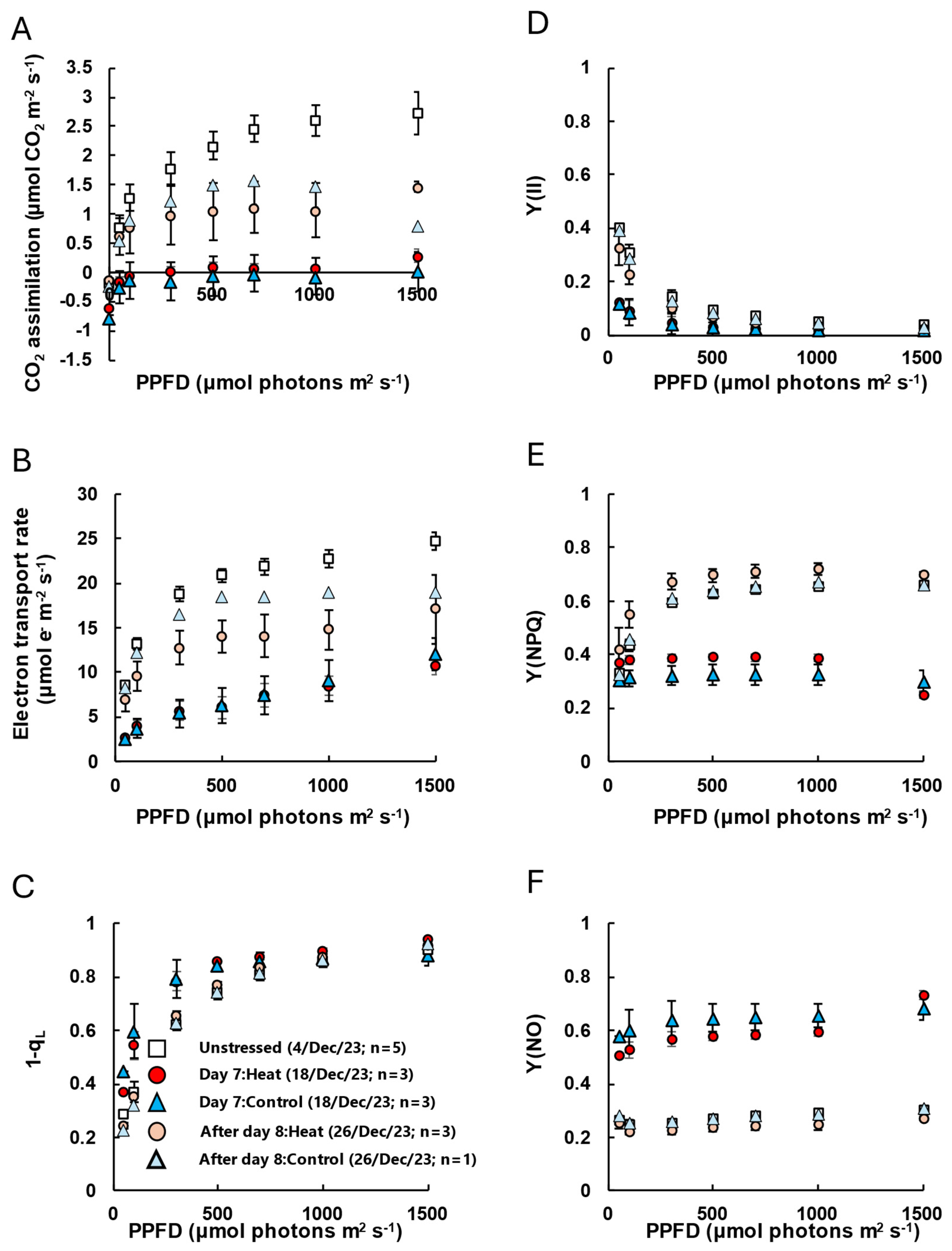 4.4. Measurements of Gas Exchange and Chlorophyll Fluorescence