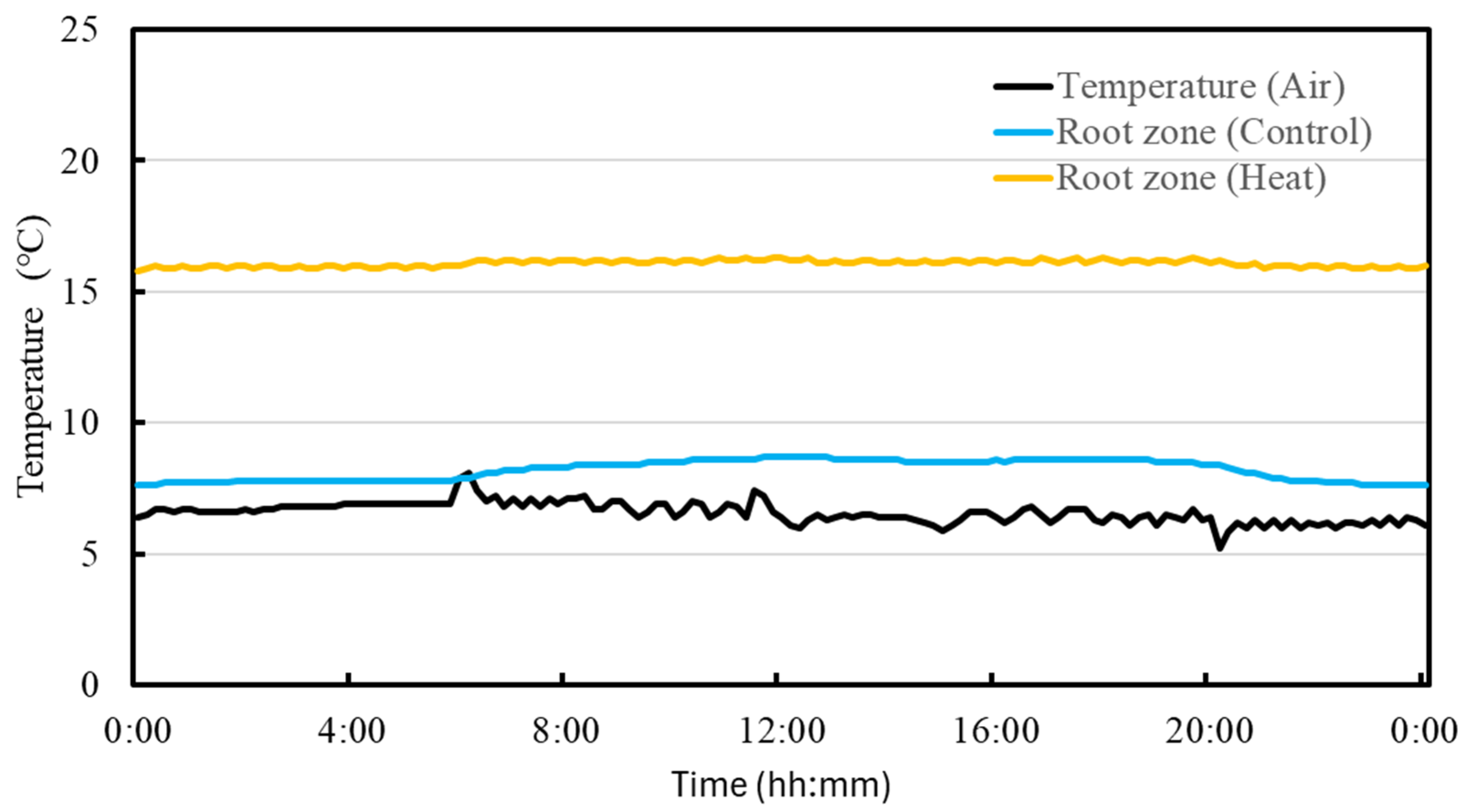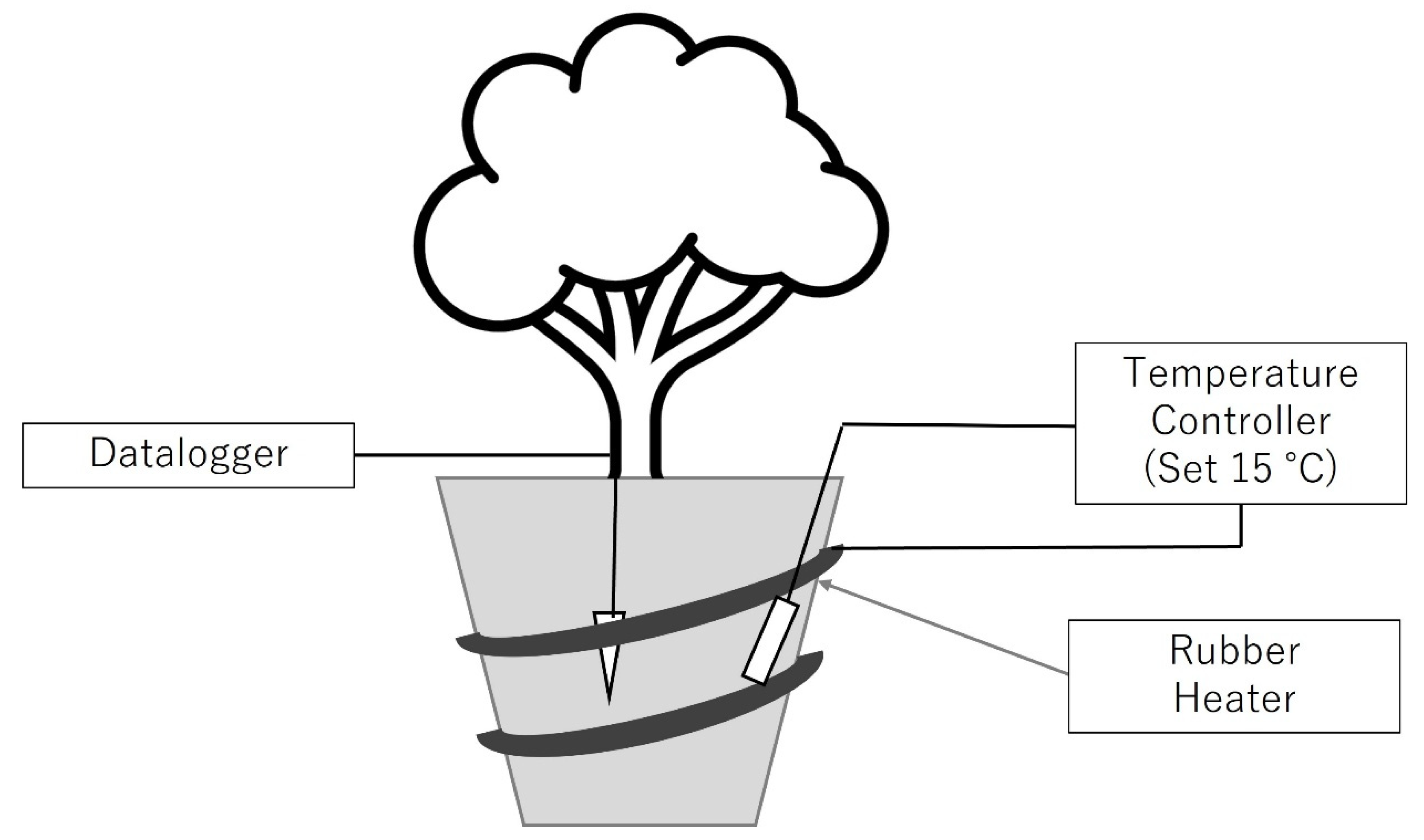 - Kubota, S.; Muramatsu, Y.; Oshima, A.; Otabe, M.; Sugata, Y.; Koshioka, M. Growth Regulation of Pot Flowers by Root-zone Temperature Control Using New Root-zone Environmental Control System (N.RECS). Hortic. Res. 2018, 17, 95–103. [Google Scholar] [CrossRef][Green Version]
