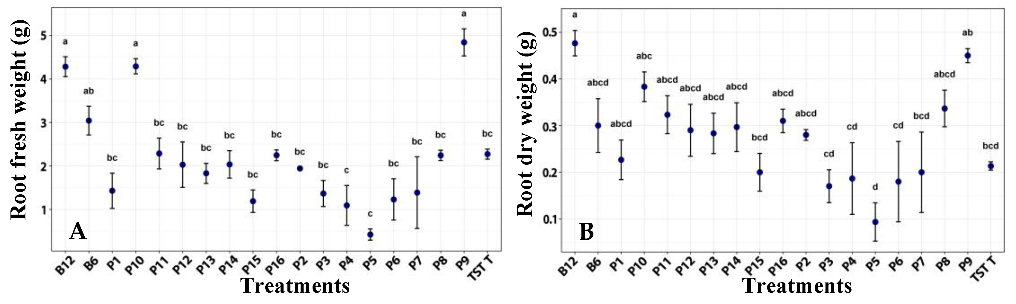 - Charron-Lamoureux, V.; Lebel-Beaucage, S.; Pomerleau, M.; Beauregard, P. Rooting for success: Evolutionary enhancement of Bacillus for superior plant colonization. Microb. Biotechnol. 2024, 17, e70001. [Google Scholar] [CrossRef] [PubMed]