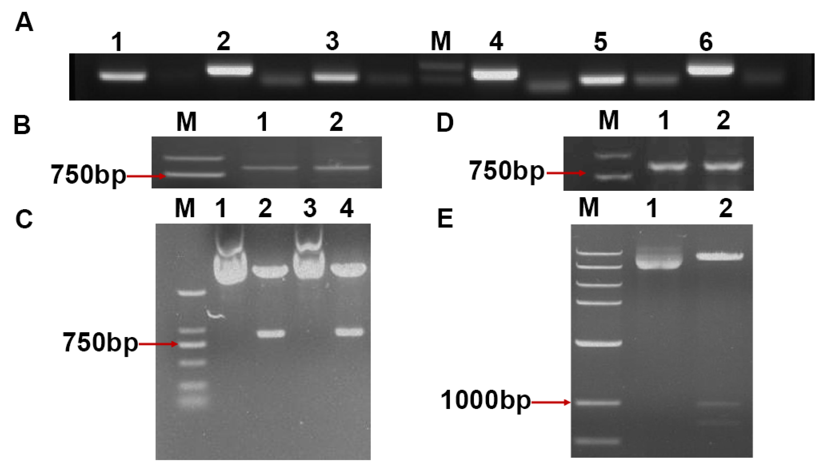 4.2. Construction of the Target Gene Recombinant Vector Based on amiRNA