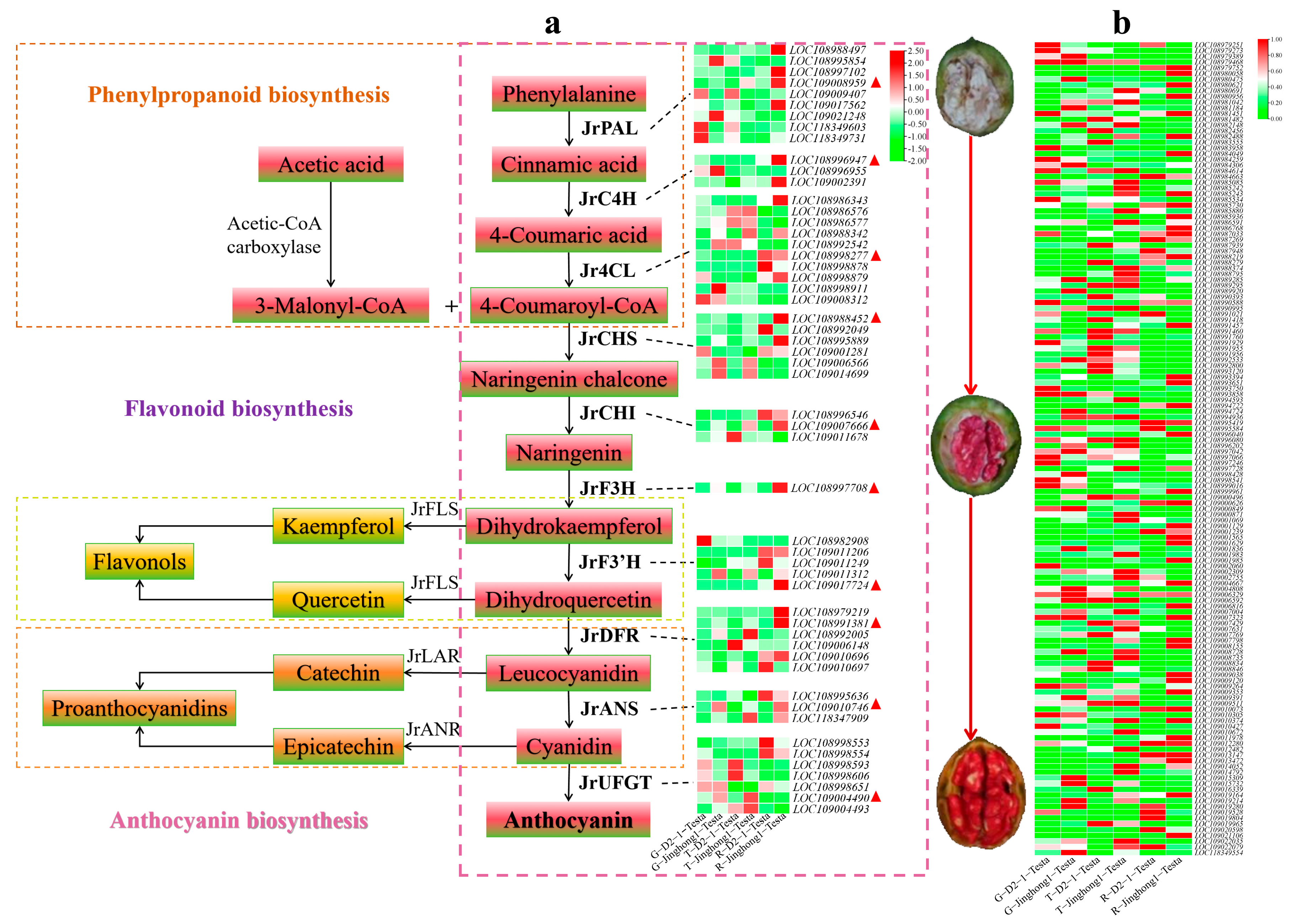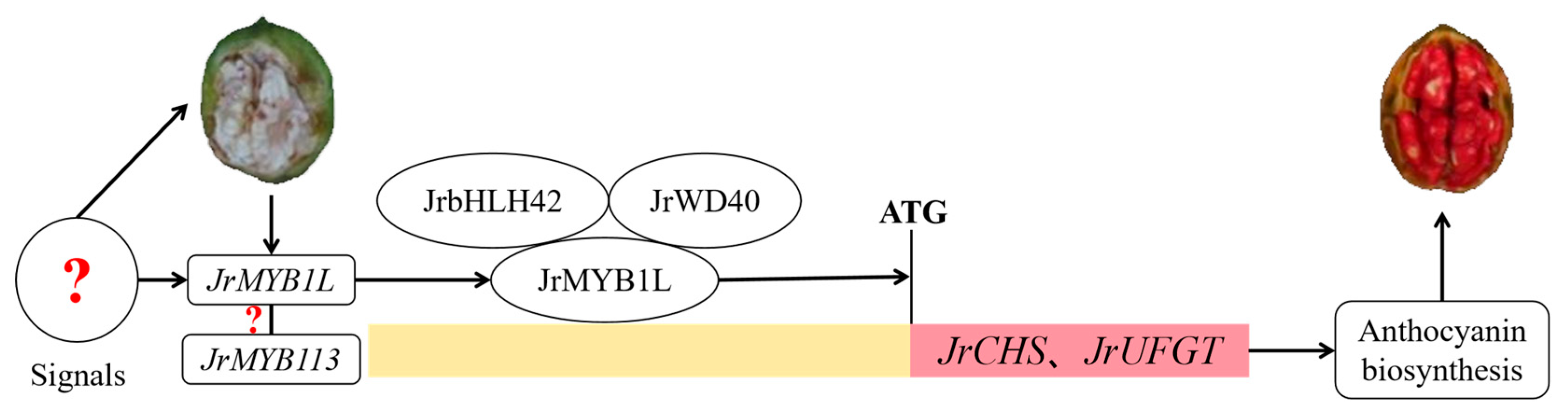 JrUFGT in the form of JrMYB1L-JrbHLH42-JrWD40 complex, thereby promoting anthocyanin biosynthesis in the testa of ‘Jinghong 1’ (